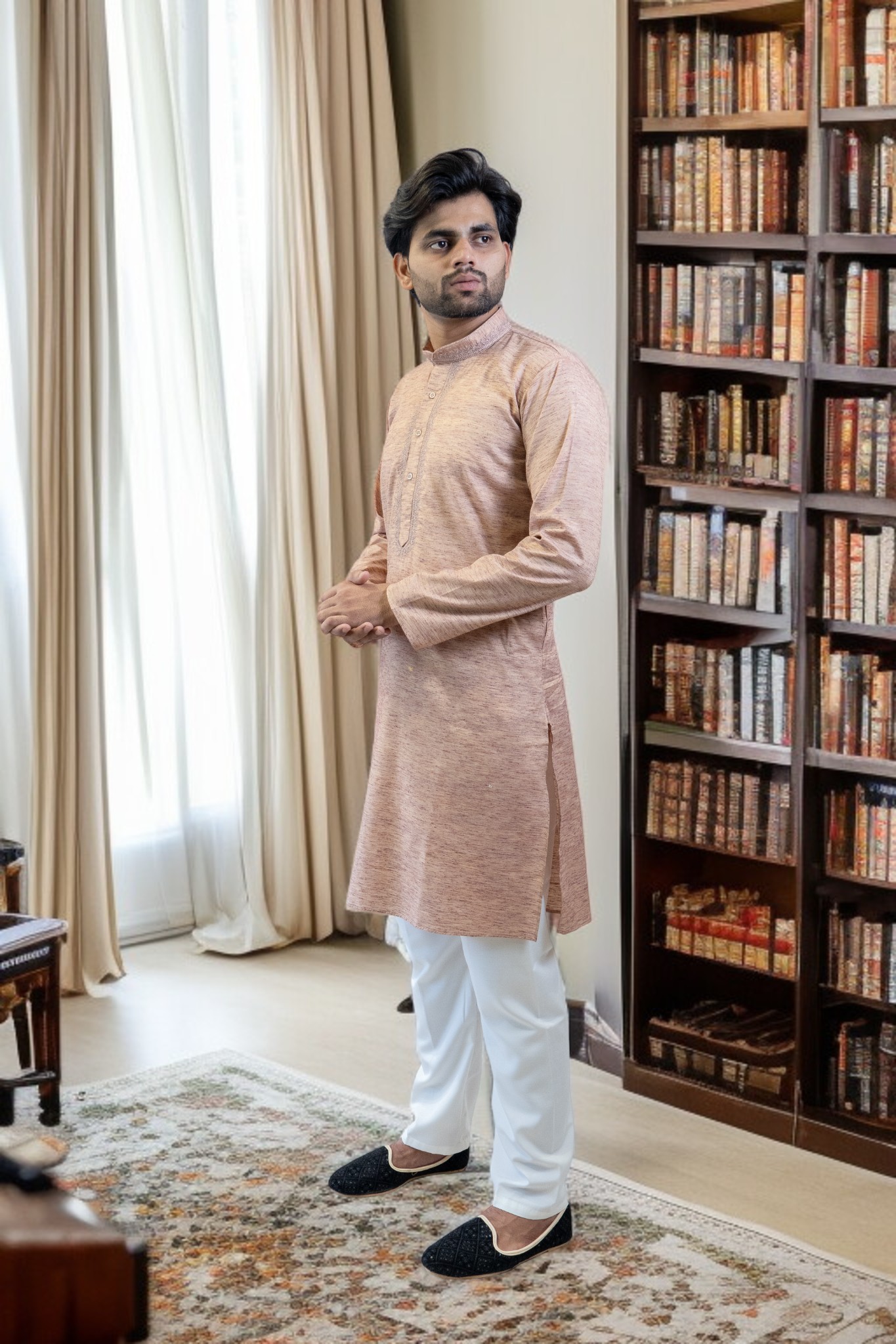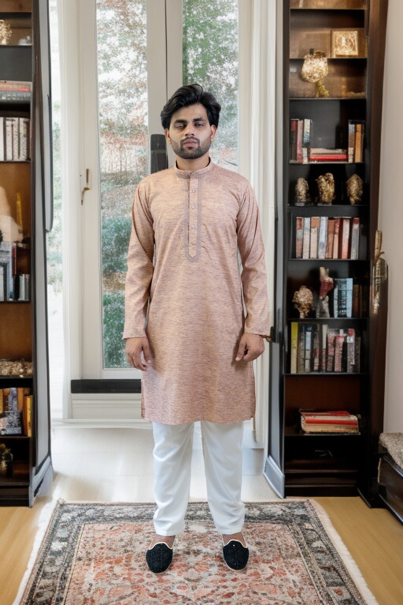 This kurta pajama is perfect for daily wear, office use, or special occasions, offering a regular fit that ensures freedom of movement and all-day comfort. The beach color gives a calm, natural, and sophisticated look, suitable for men of all ages and generations.