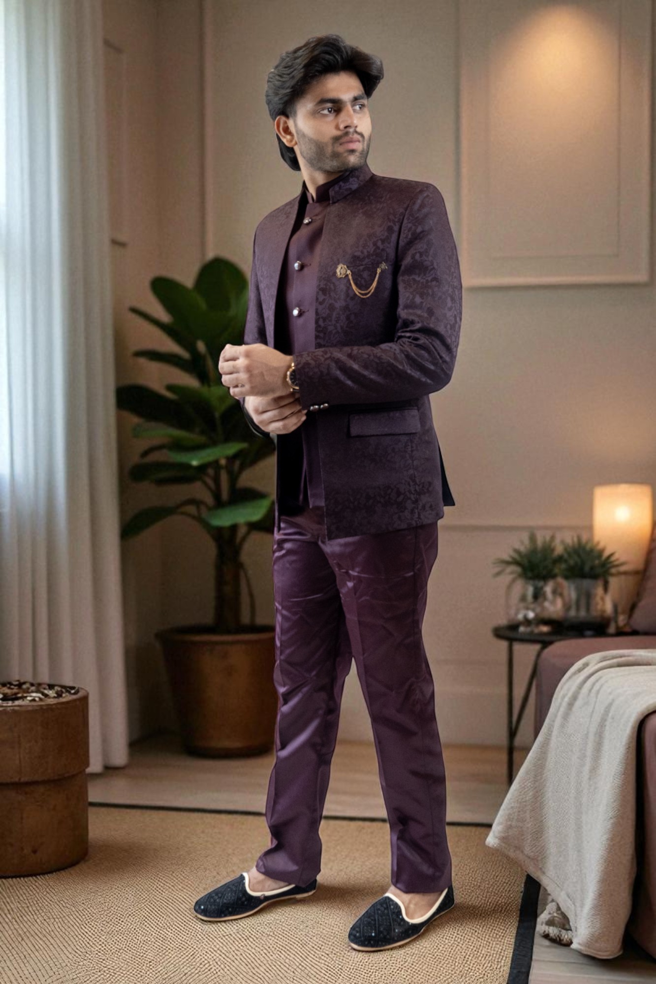 Luxury designer Jodhpuri suit for special events, tailored in premium suiting fabric for a refined and regal look. Featuring a classic Bandhgala jacket, it blends Indian tradition with modern Indo-Western style. Perfect for weddings, receptions, or festive occasions, this suit ensures comfort, durability, and sophistication. Designed for grooms and stylish men, it’s a timeless outfit that brings heritage and luxury together in one statement look.