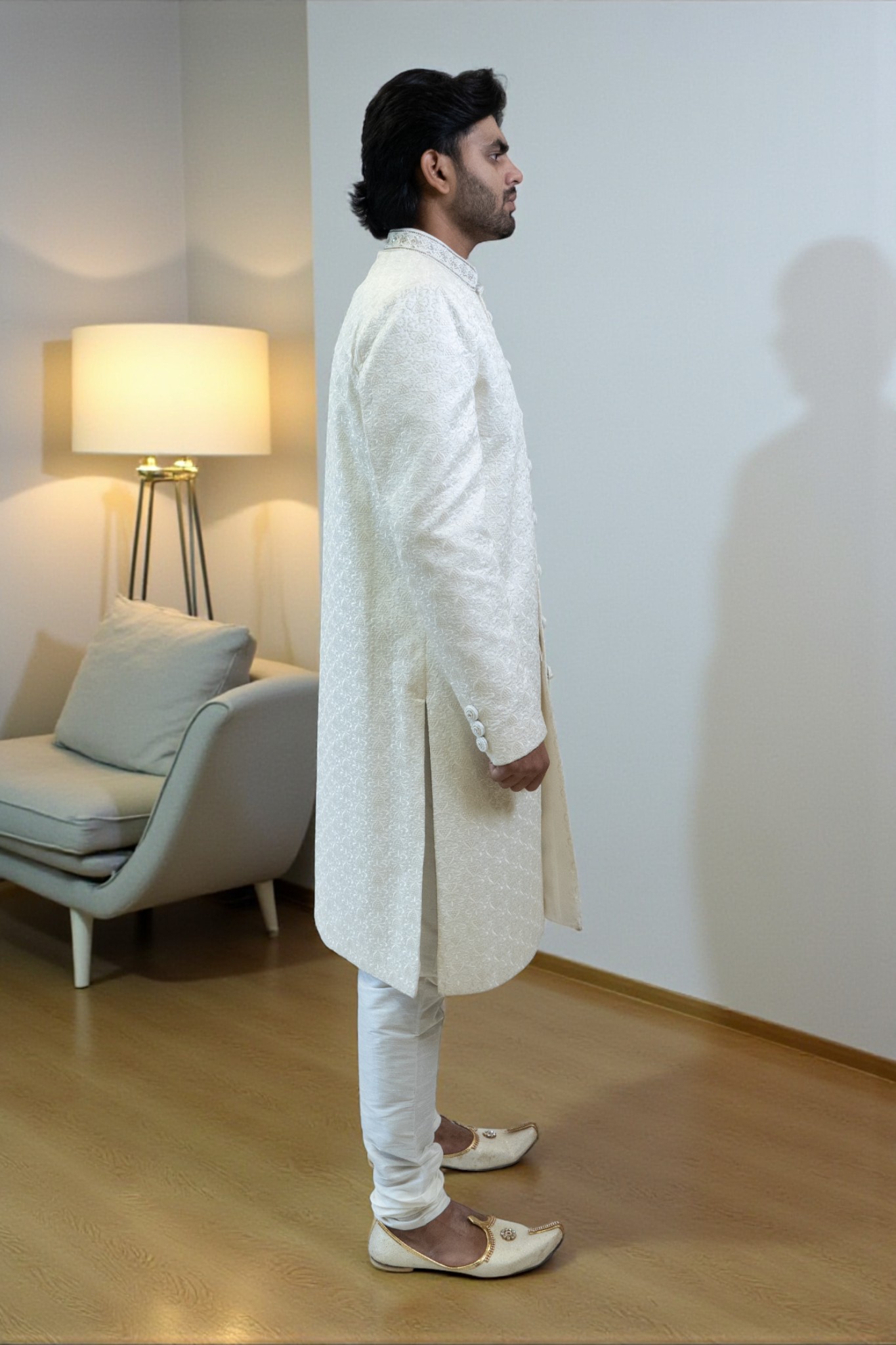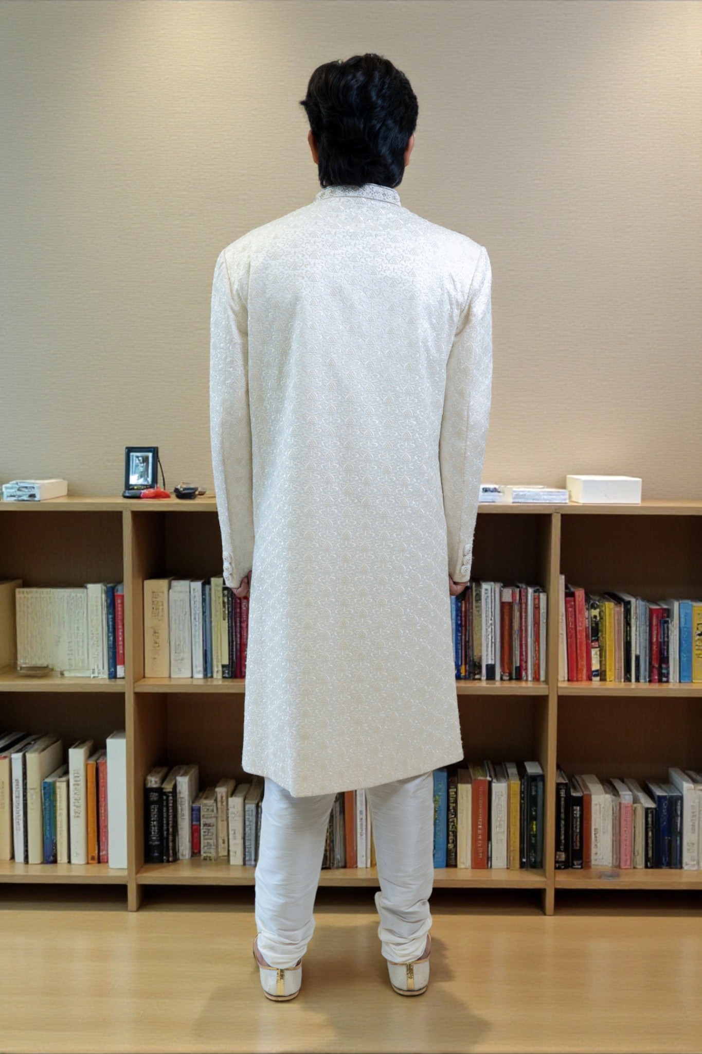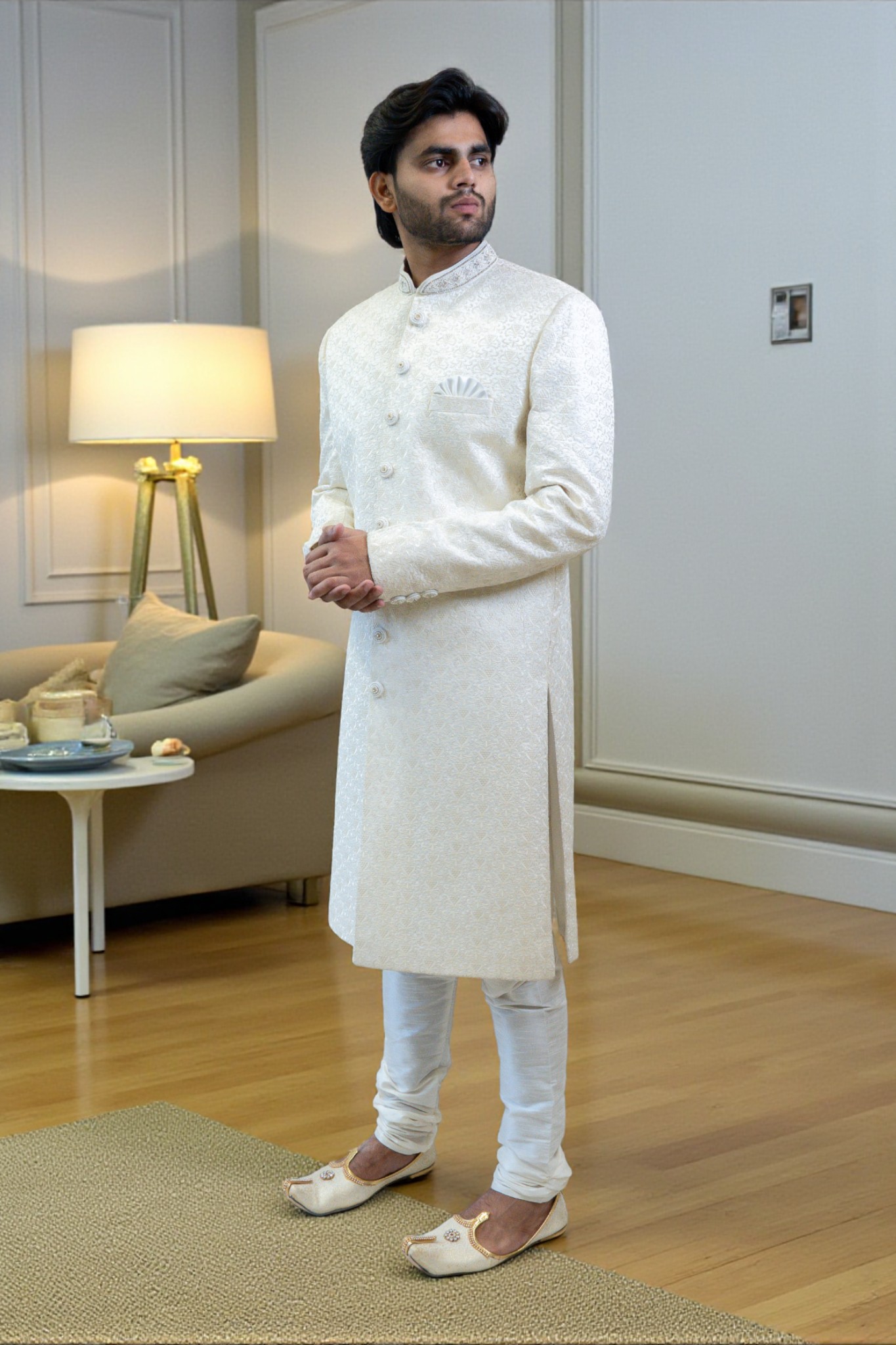 Men’s Off-White Sherwani Set with Sequin Design for Weddings and Festive Occasions
