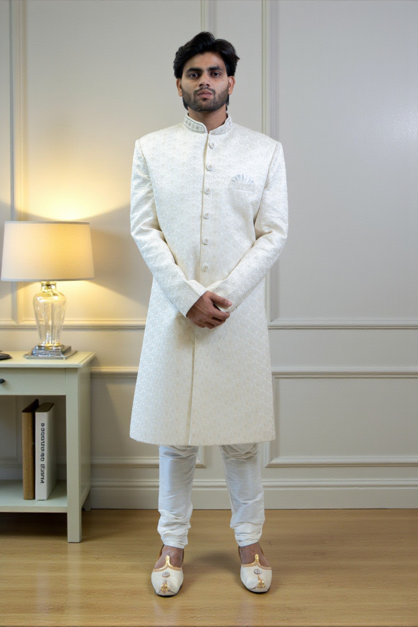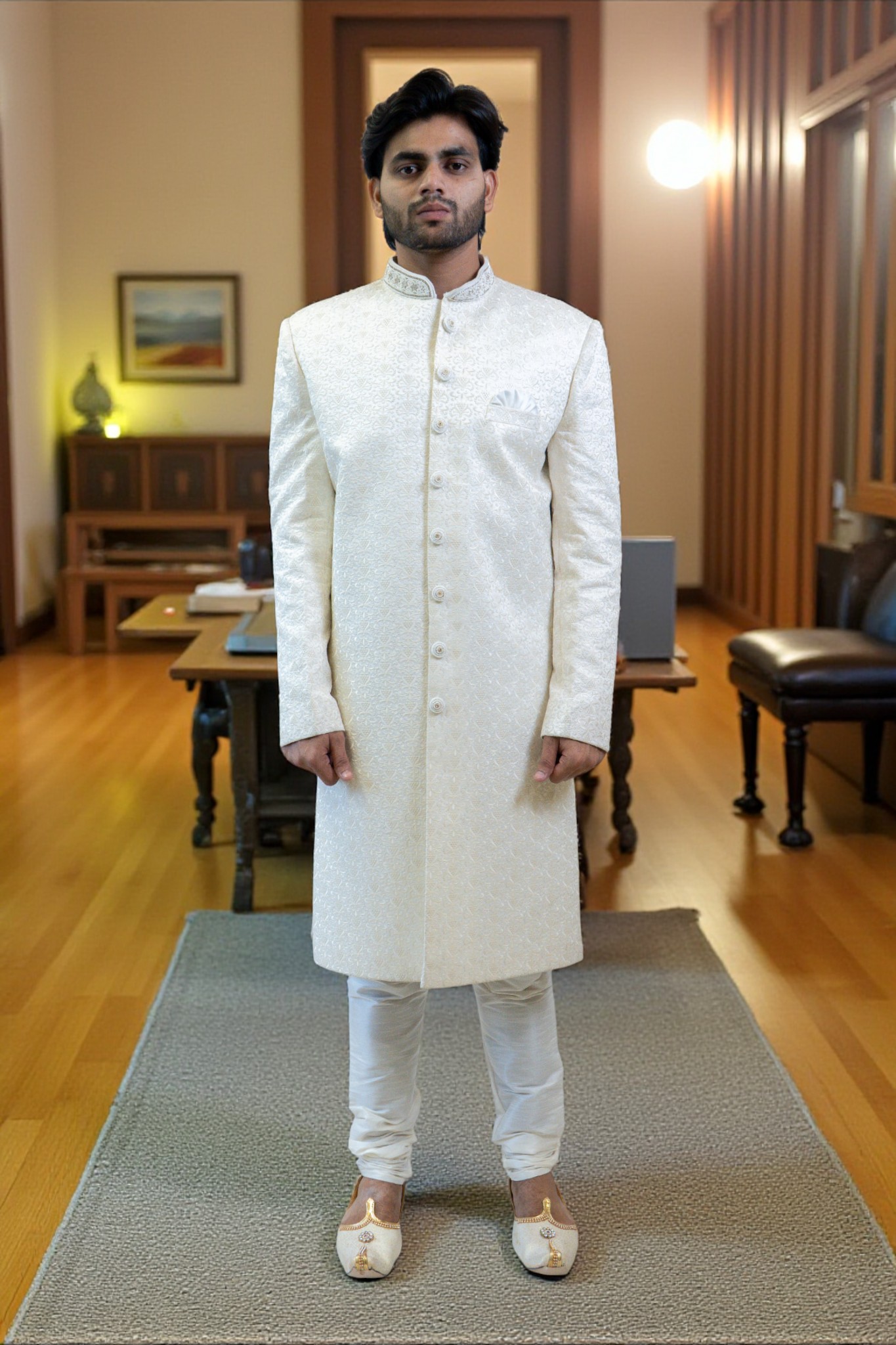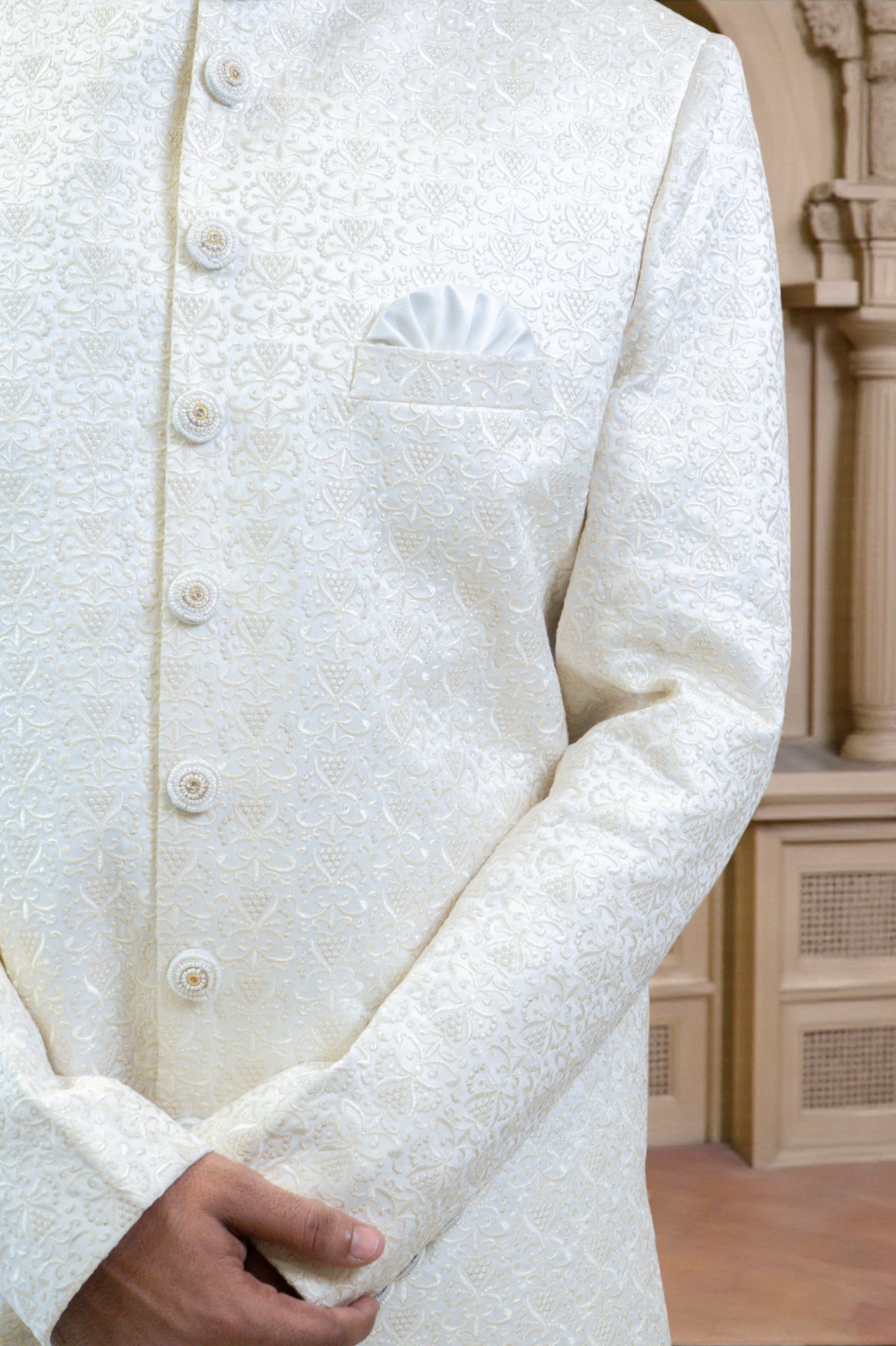 Men’s Off-White Sherwani Set with Sequin Design for Weddings and Festive Occasions