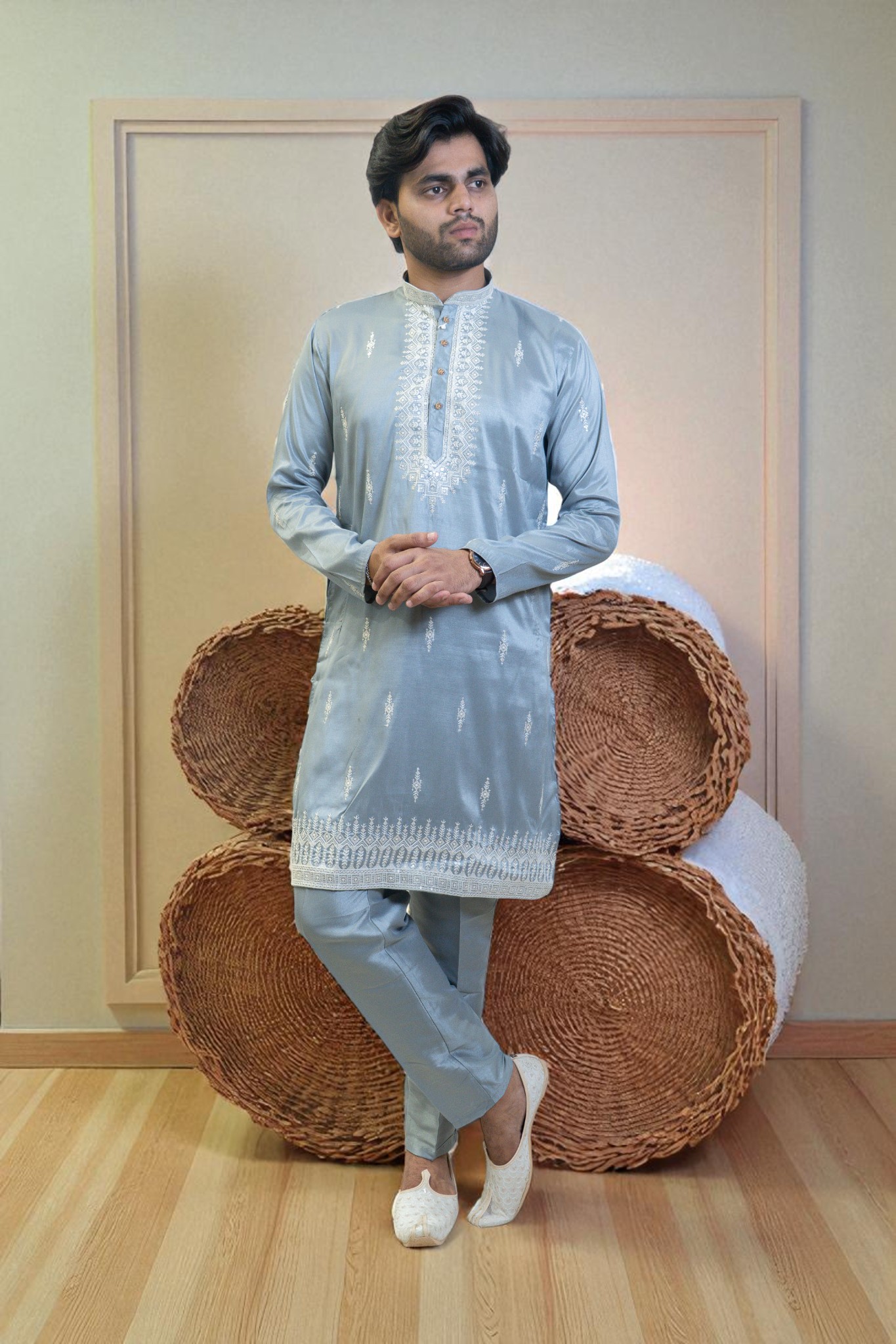 grey kurta pajama, made from premium cotton silk fabric that feels soft, smooth, and breathable. Designed for all seasons, it offers maximum comfort while keeping you stylish at every event.