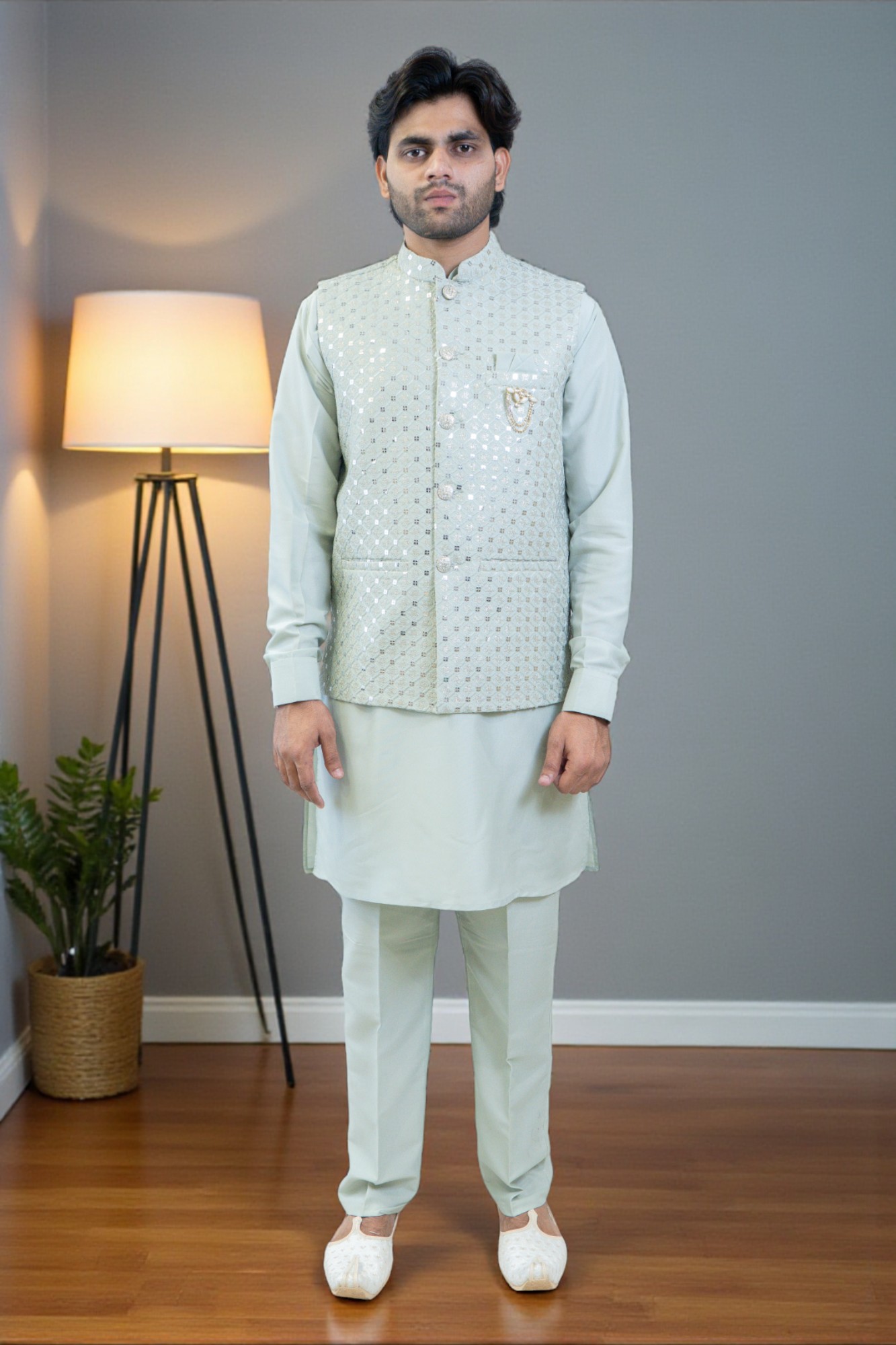 Sky Blue Kurta Jacket Set – Premium Embroidery Design | Luxury Occasion Wear