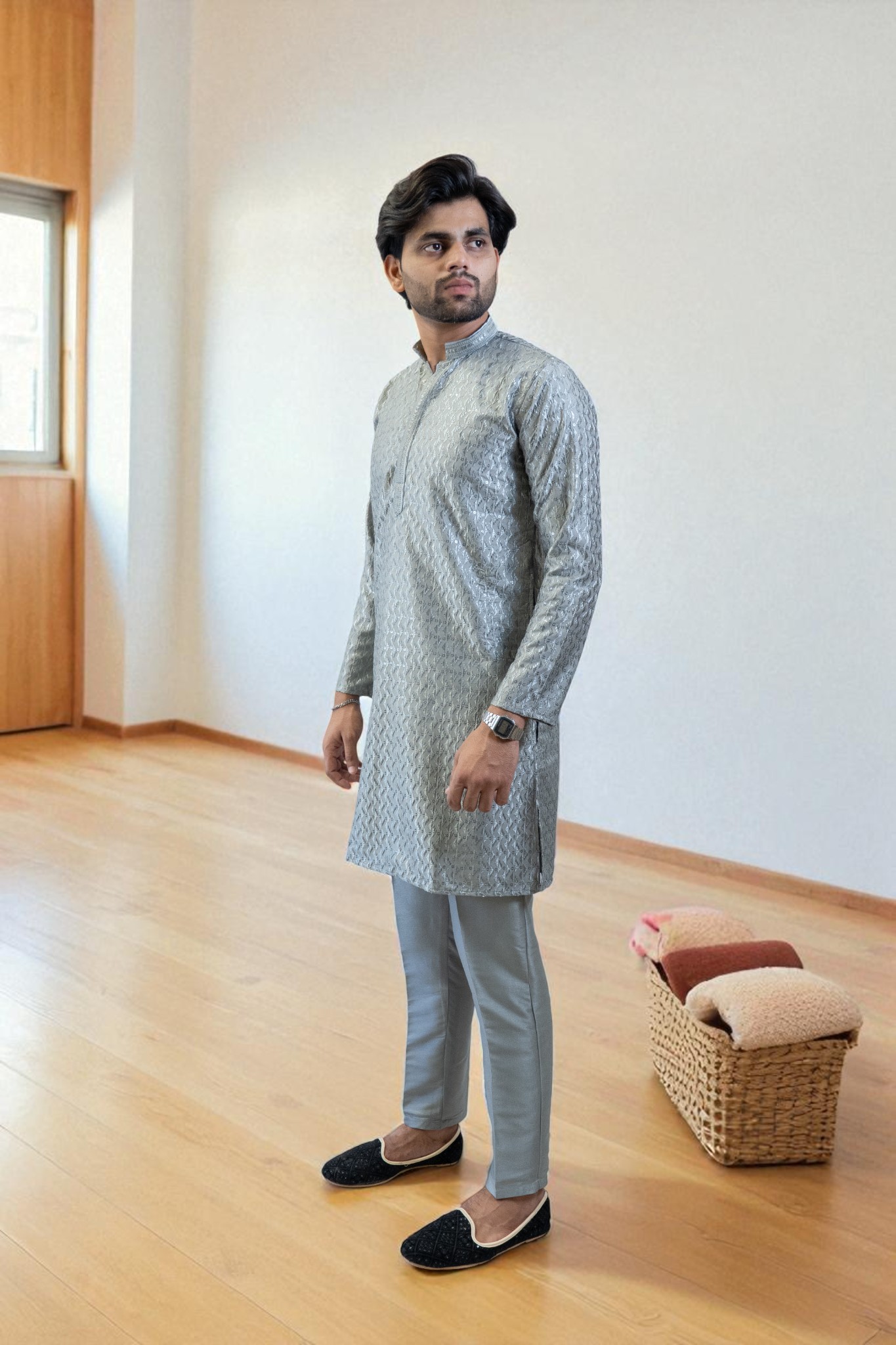 This designer kurta set combines modern style with traditional charm, making it a must-have for men’s ethnic wear, Indian wedding outfits, and festival clothing.