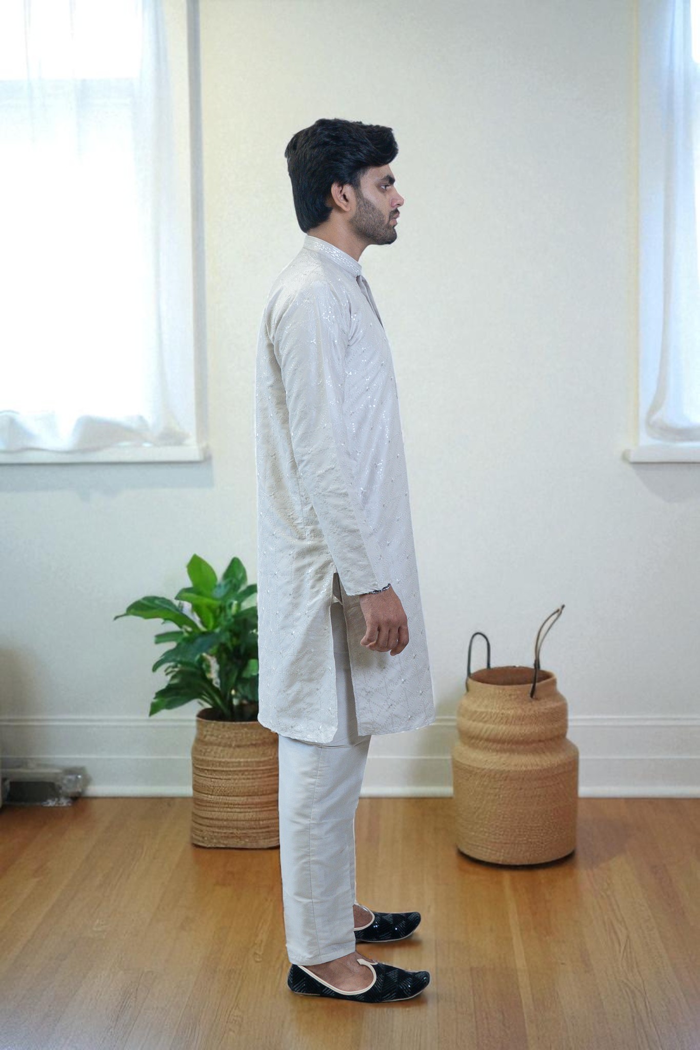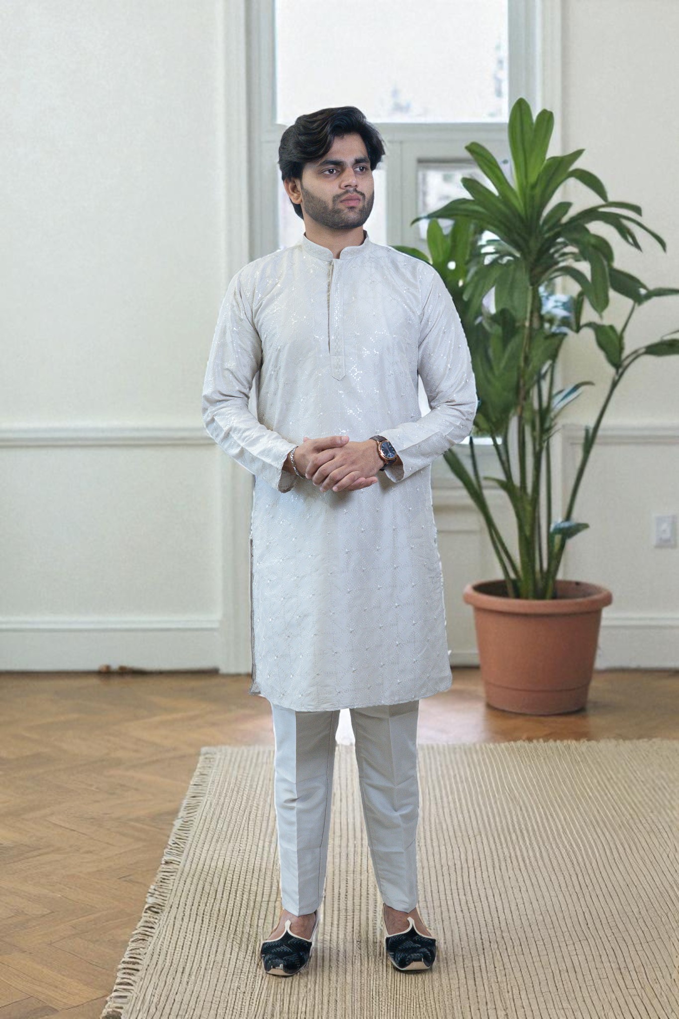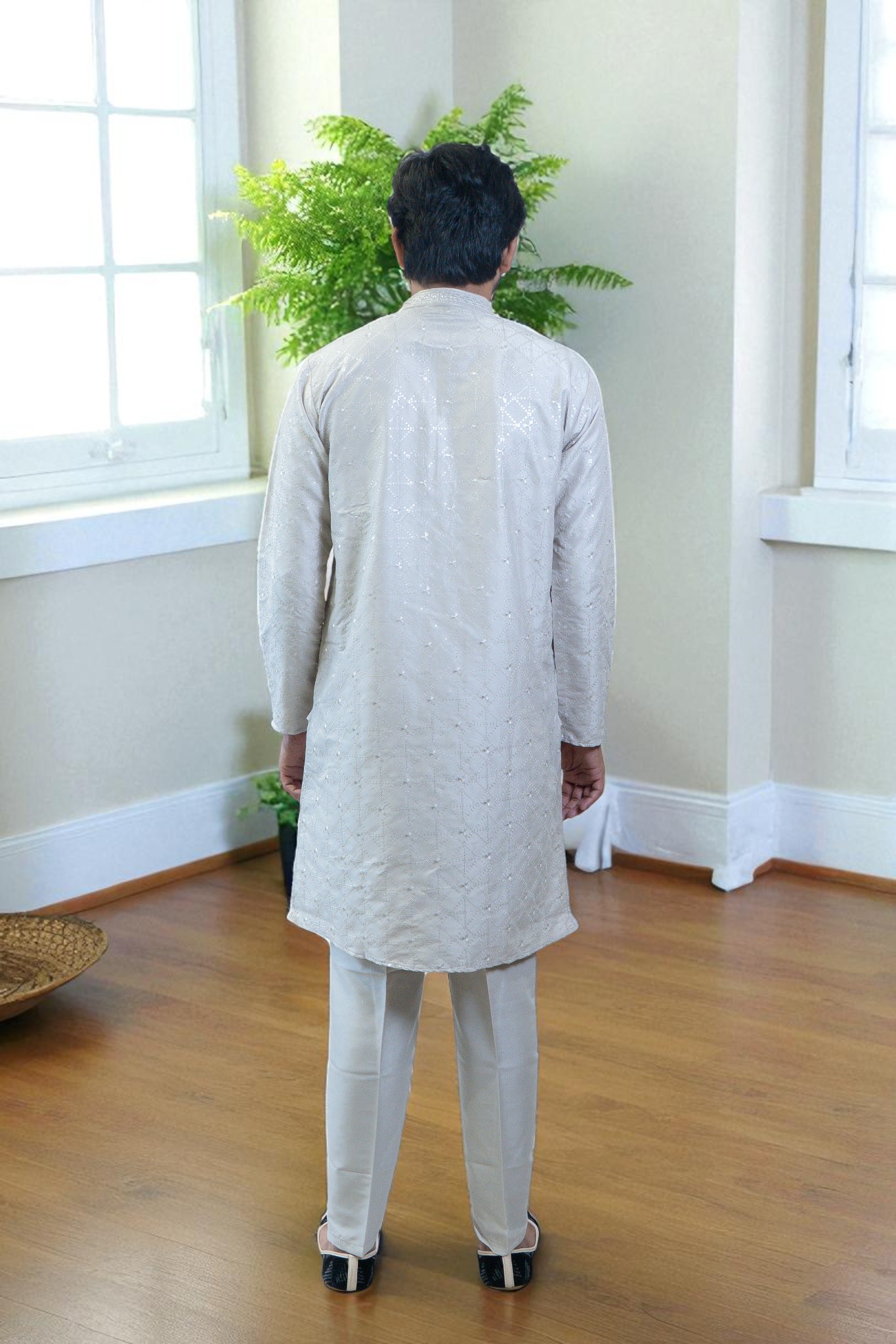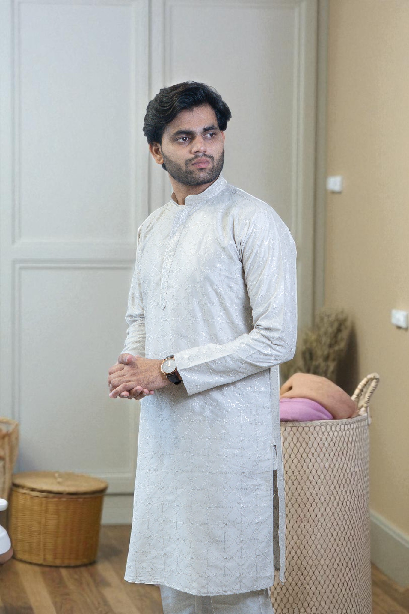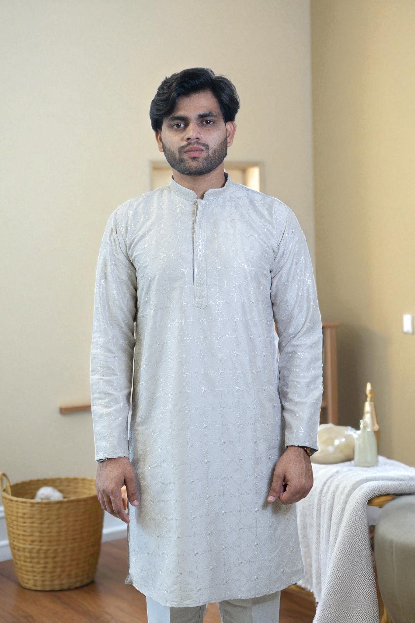 Grey Kurta Pajama Set, designed for men who want style, comfort, and elegance in one outfit. The extra shining kurta adds a touch of glamour, making it perfect for weddings, parties, Diwali, mehendi, sangeet, and other festive occasions.