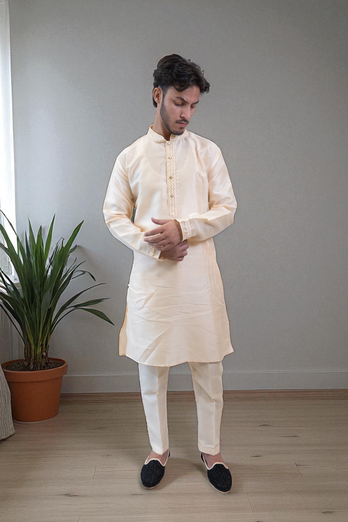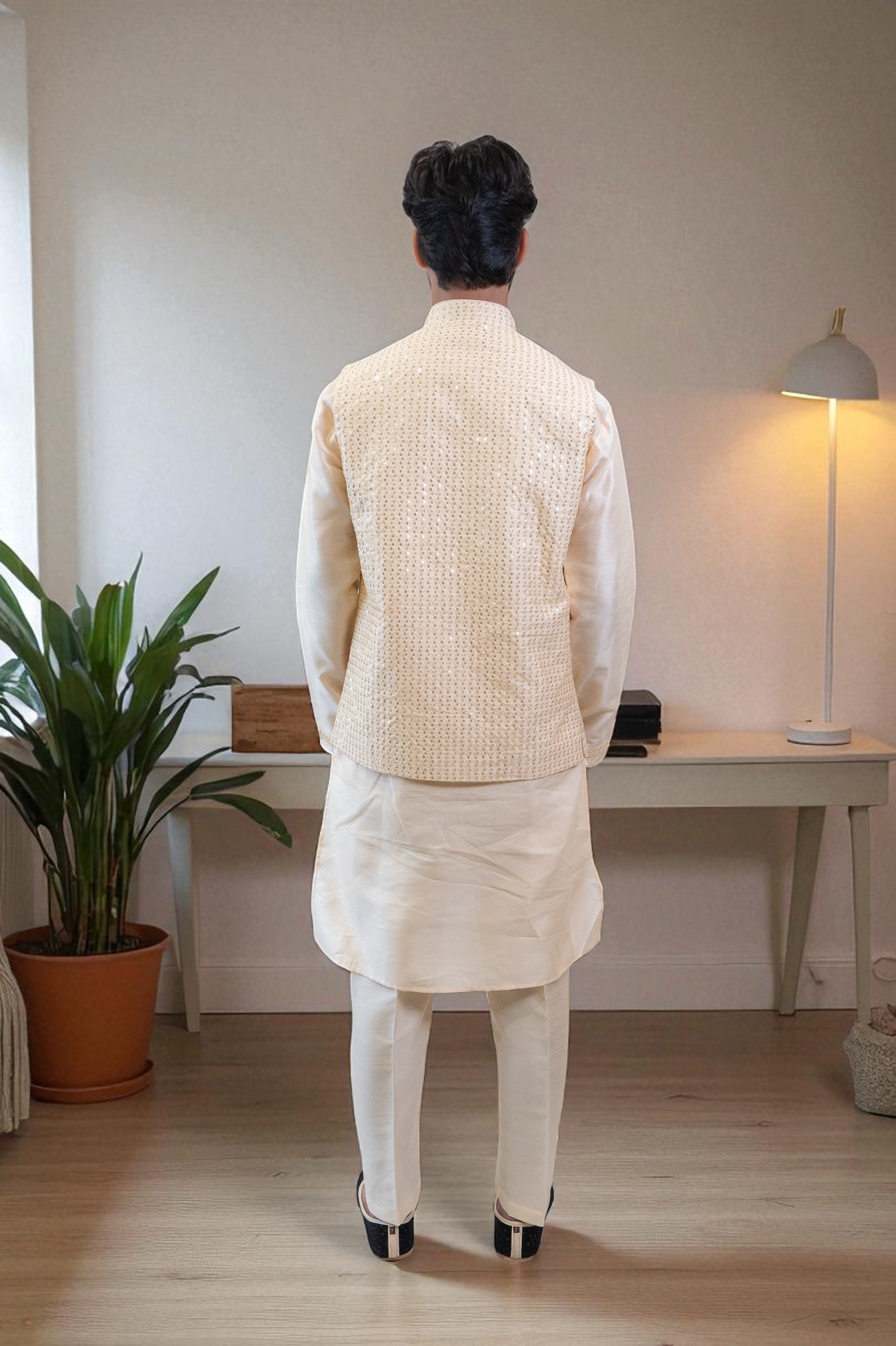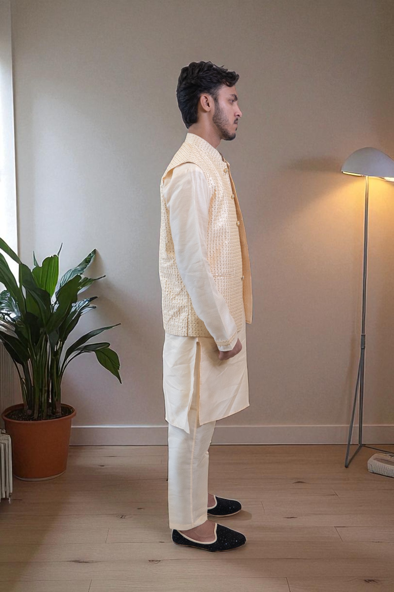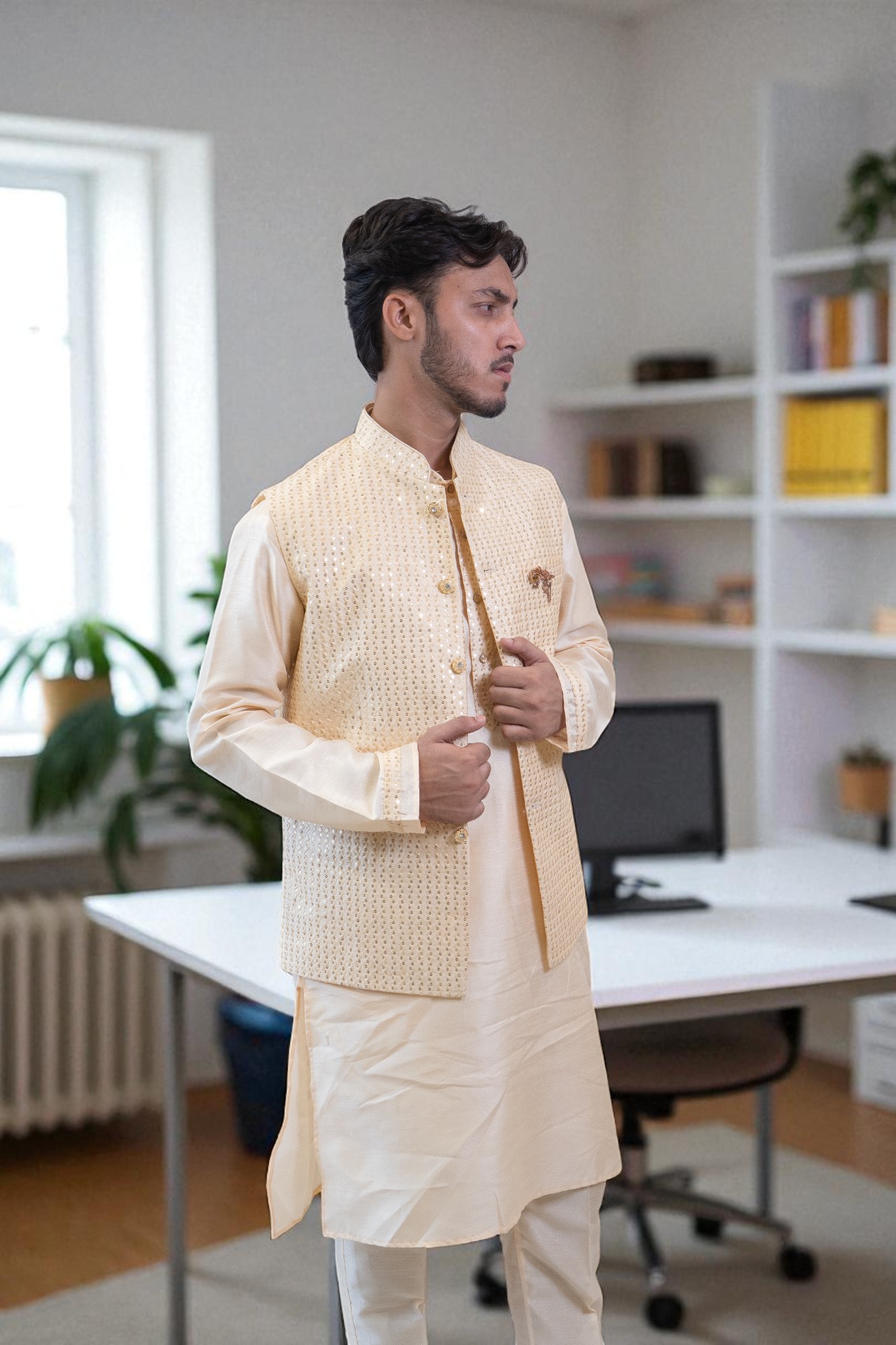 Jacket Kurta for Groom! Featuring a comfortable kurta, matching pajama, and stylish yellow jacket, this set is perfect for weddings, parties, and festive occasions. Made from soft, premium fabric, this wedding kurta pajama offers comfort and elegance all day. Ideal as men’s party wear, this festive outfit comes in vibrant yellow and multiple sizes. Complete your look with traditional shoes for a striking ethnic style.