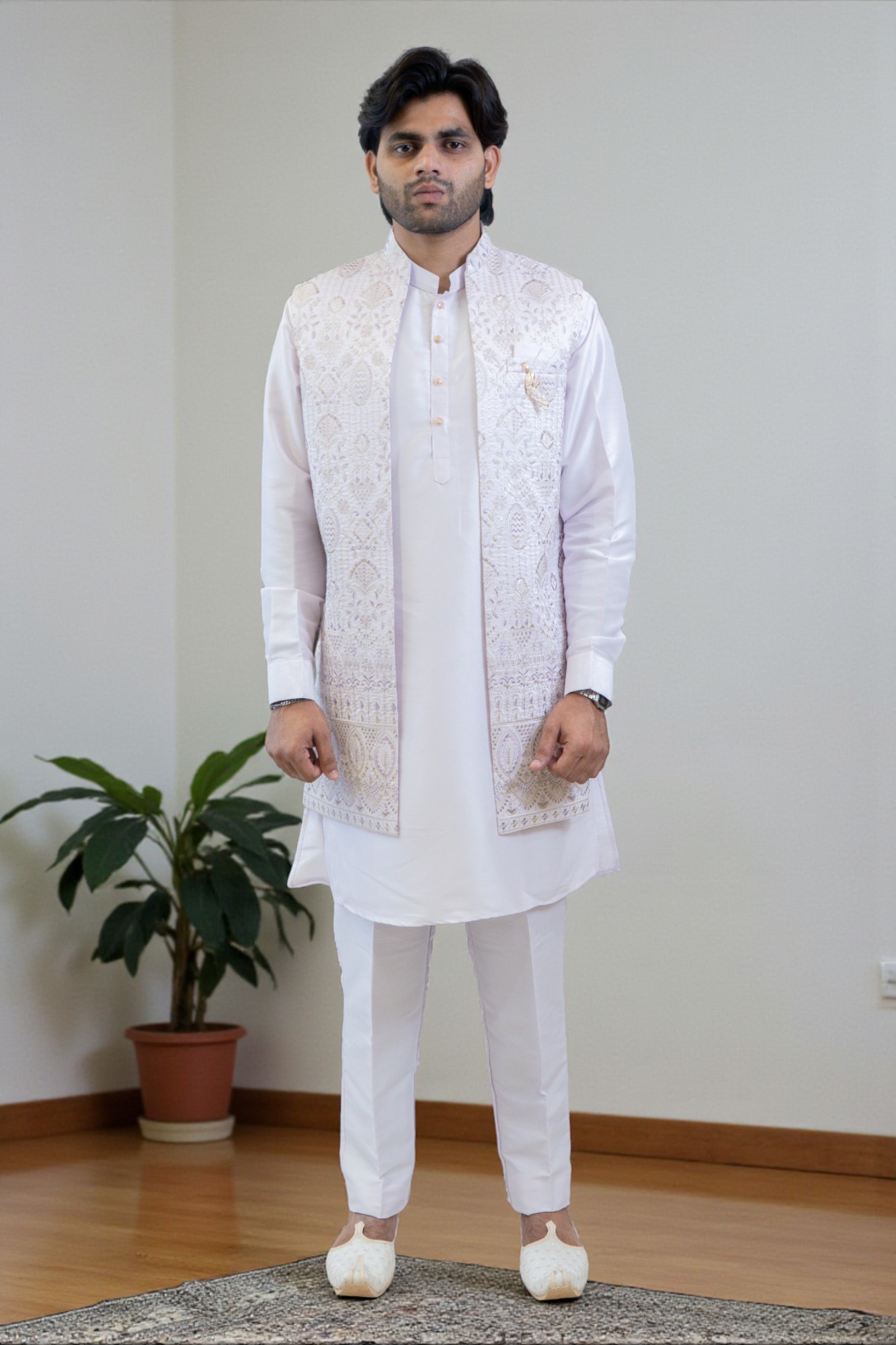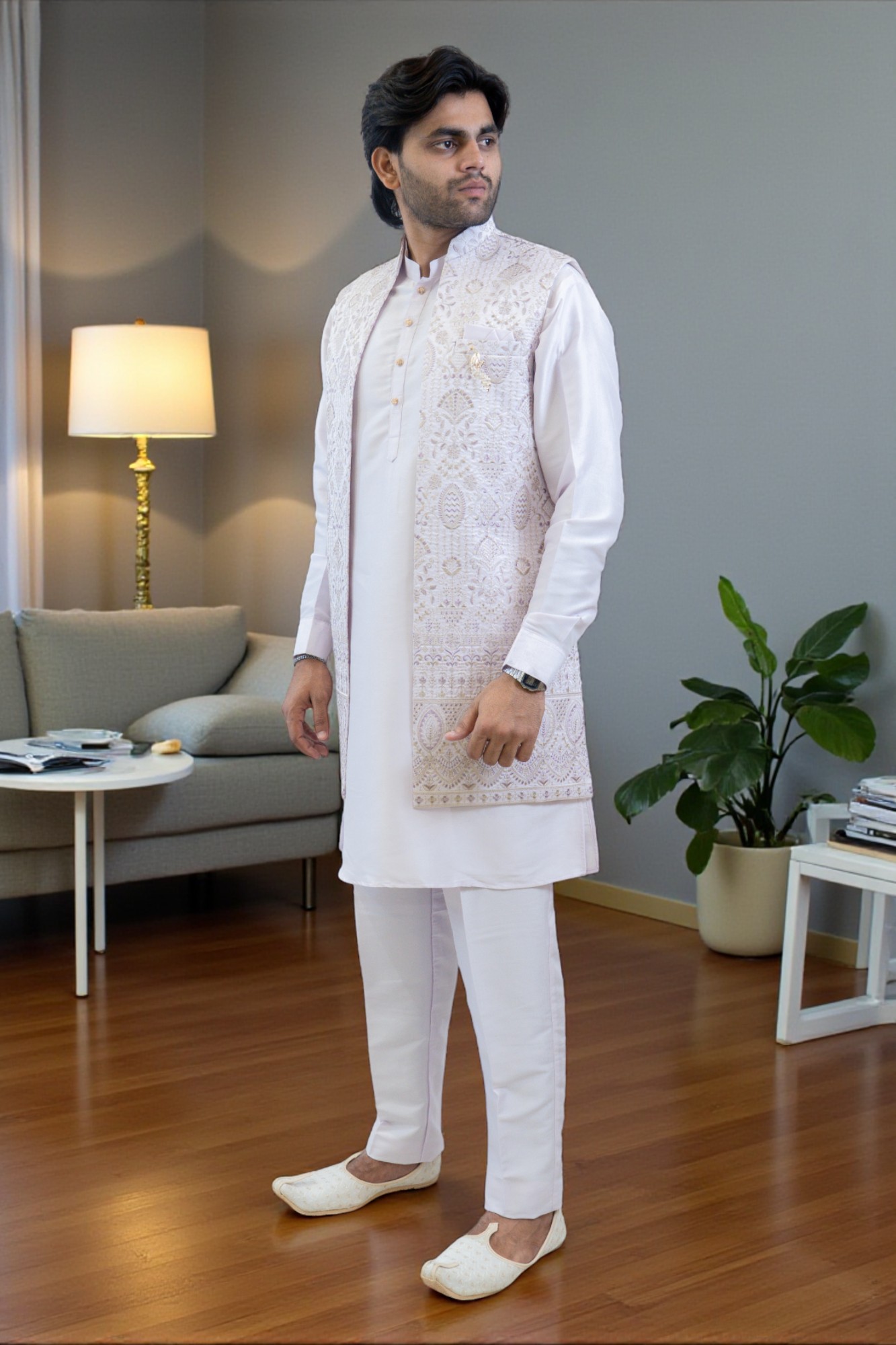 Ethnic Sequin Kurta Jacket Outfit Men