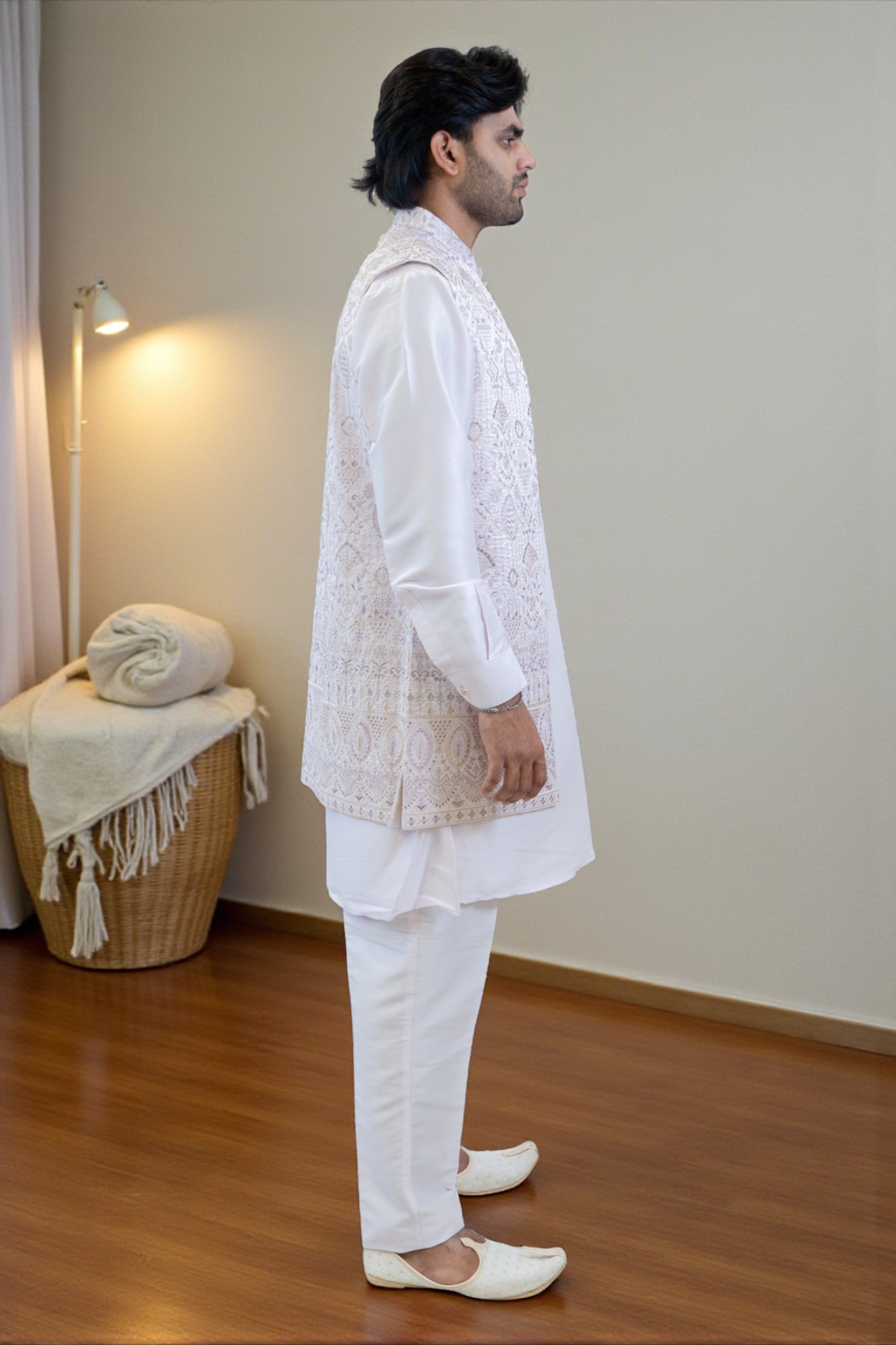 This Lavender Kurta Jacket Set is made from premium cotton-ryon fabric, offering a perfect mix of comfort and style. Designed with fine thread work and a most attractive design, it’s ideal for weddings, parties, festivals, and any occasion. A multi-purpose outfit that keeps you looking elegant and feeling comfortable all day.