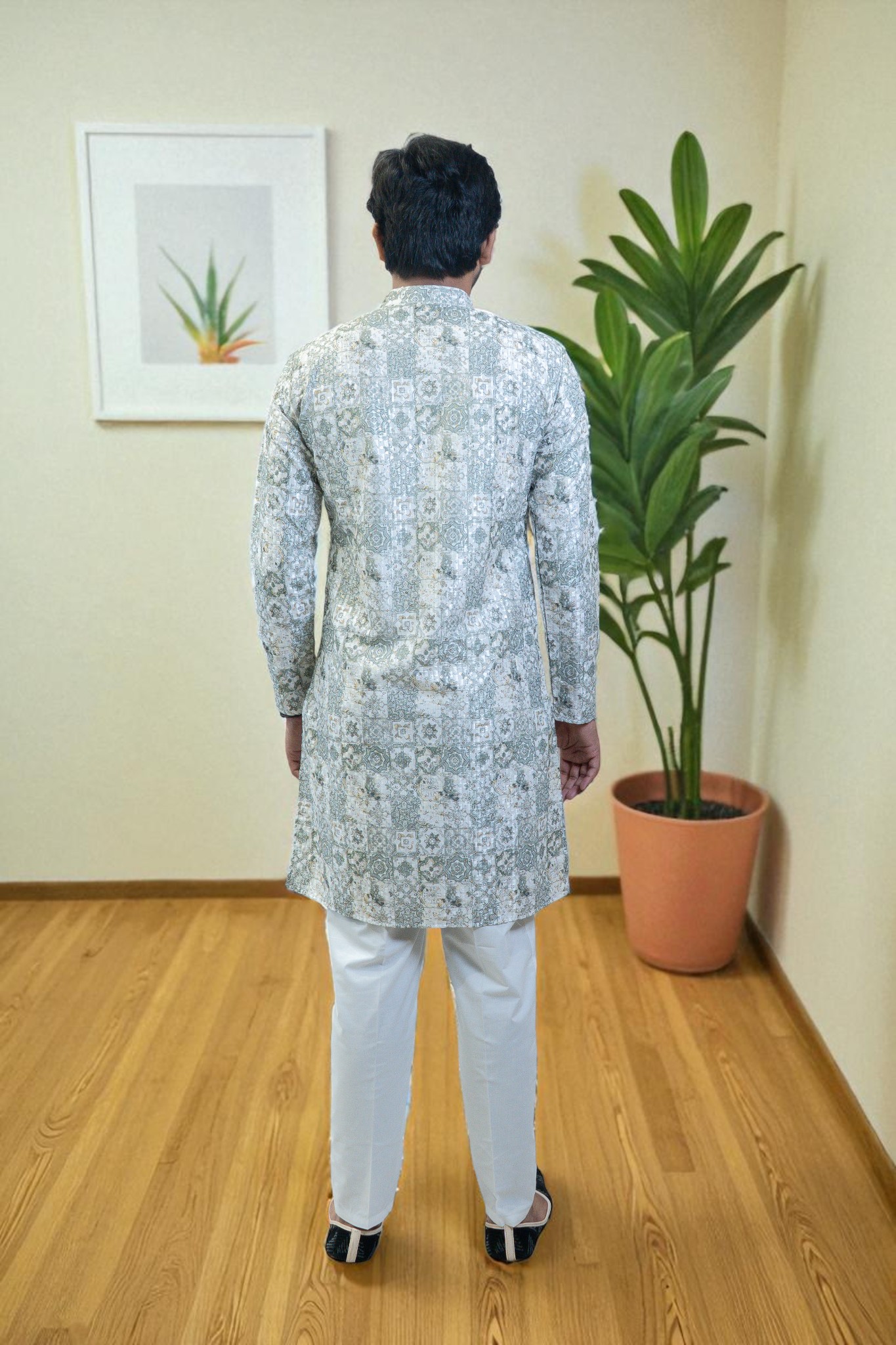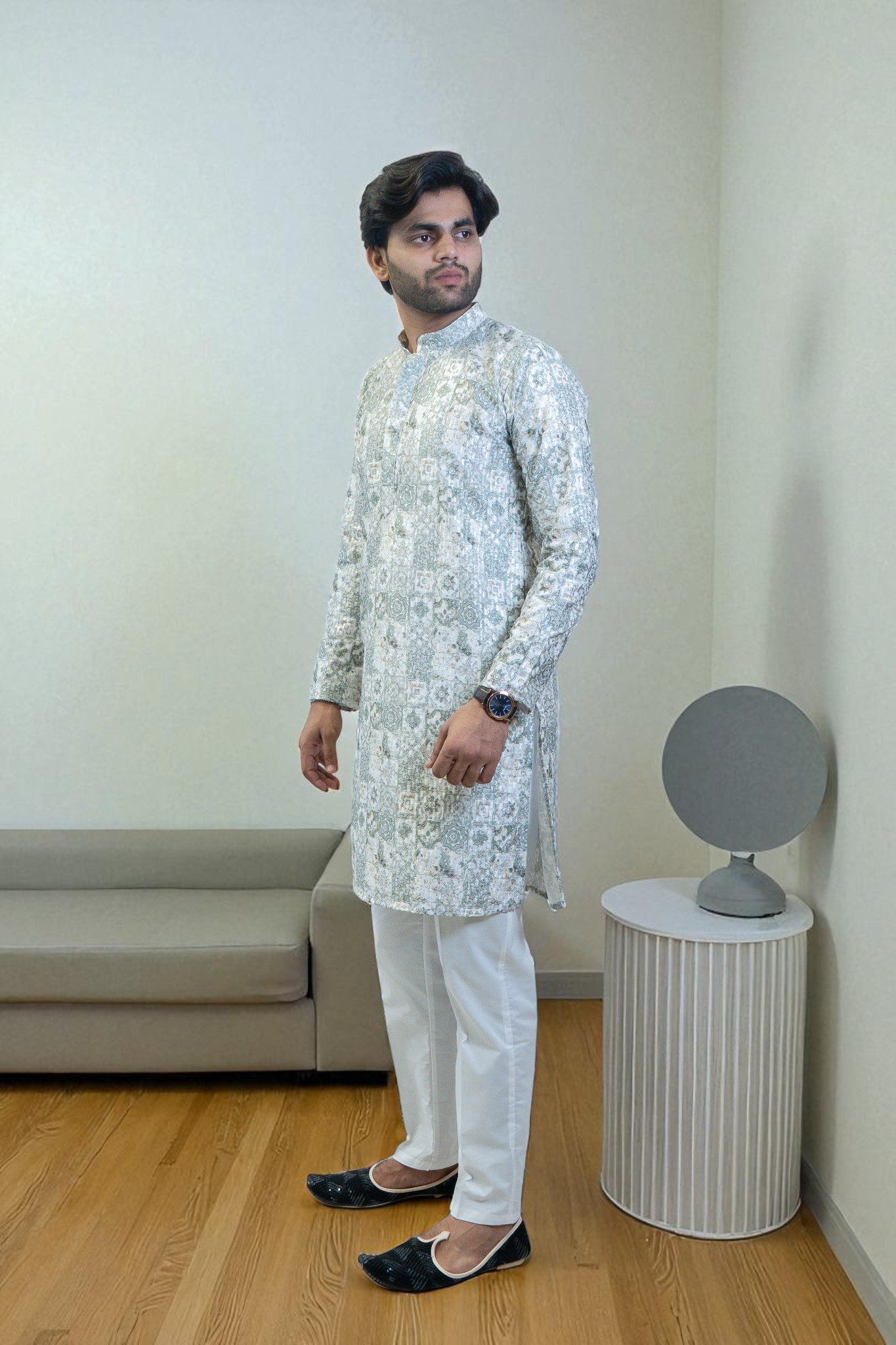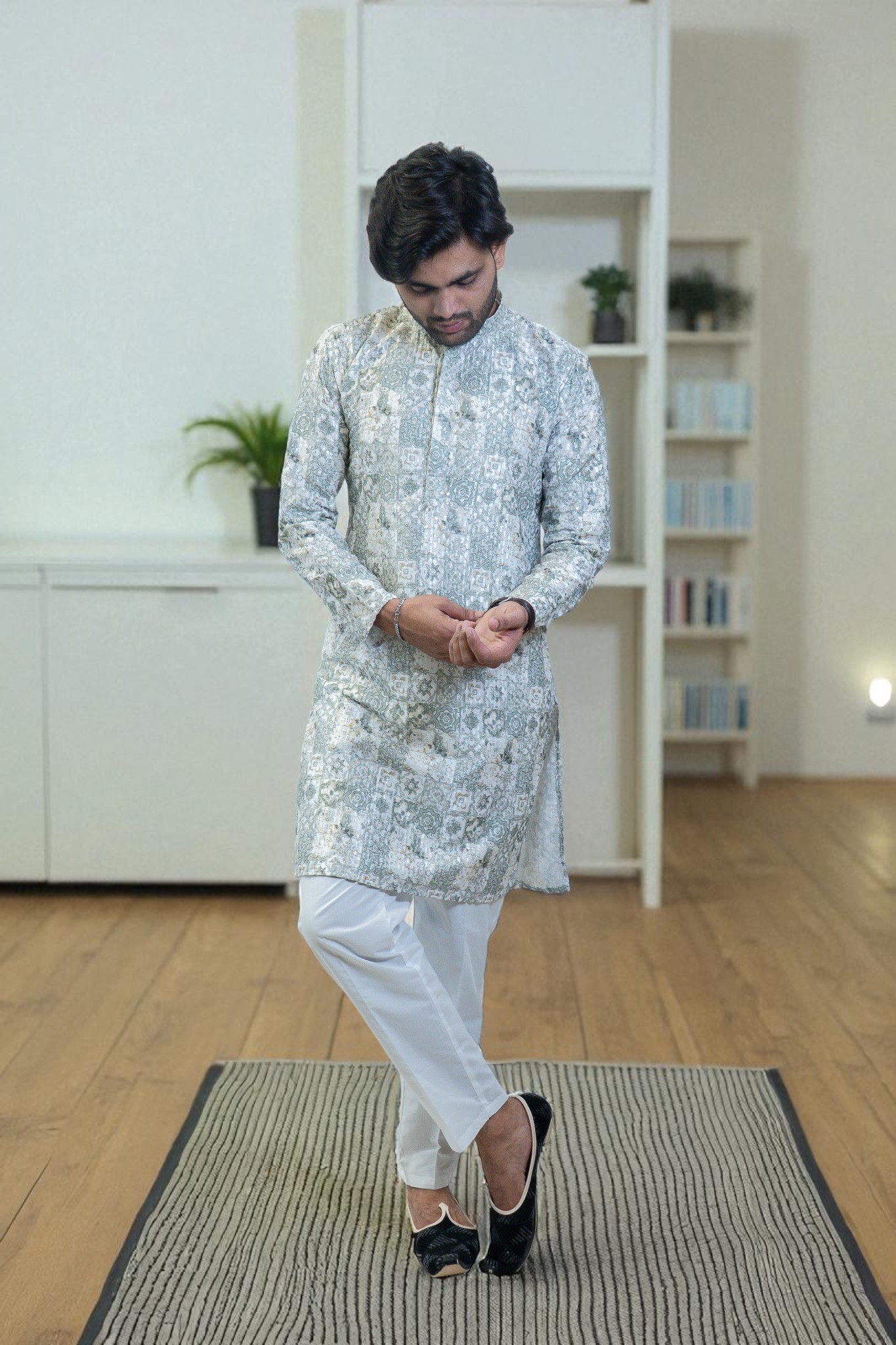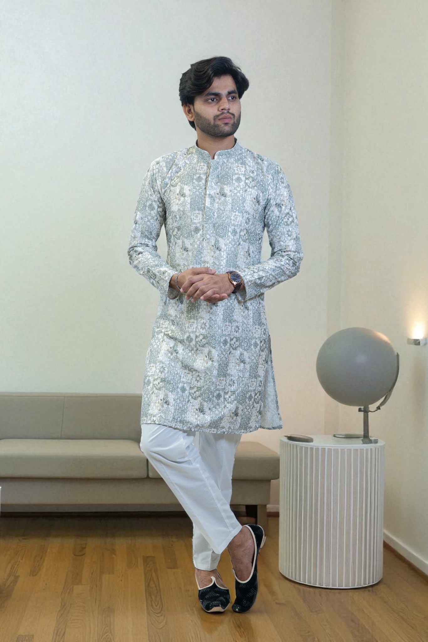 men’s kurta pajama collection in trending color combinations like grey & white, sky blue & white, lavender, and onion. Featuring unique printed designs and elegant thread work, these designer kurta sets are perfect for weddings, Diwali, parties, Mehendi, Sangeet, and festive occasions. Crafted from premium cotton silk fabric, they are comfortable, stylish, and easy to maintain, making them a must-have festive ethnic collection.