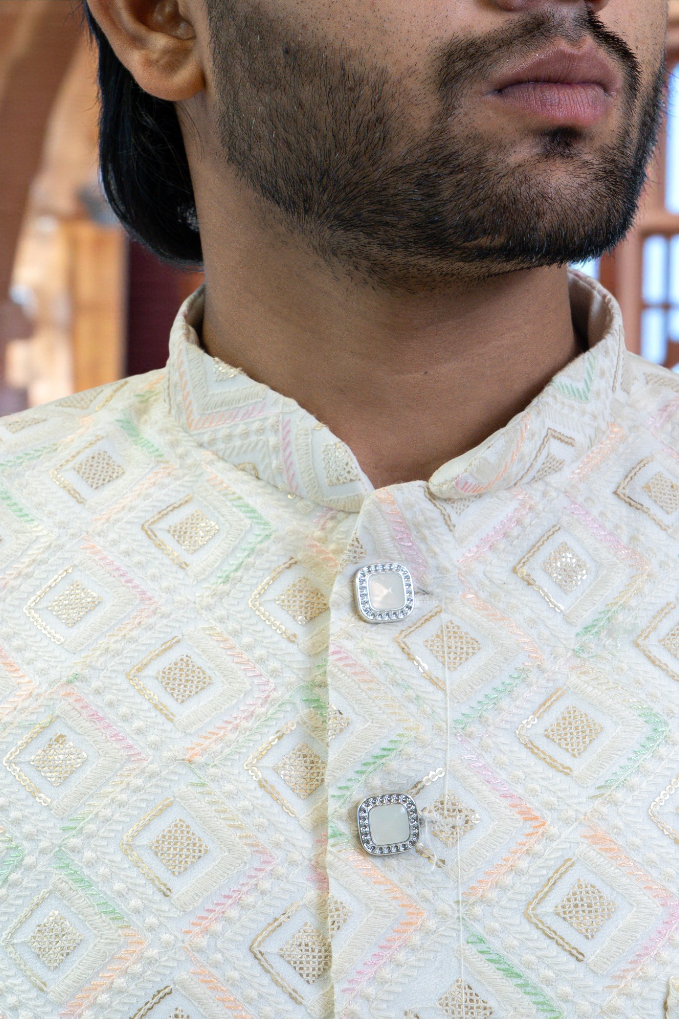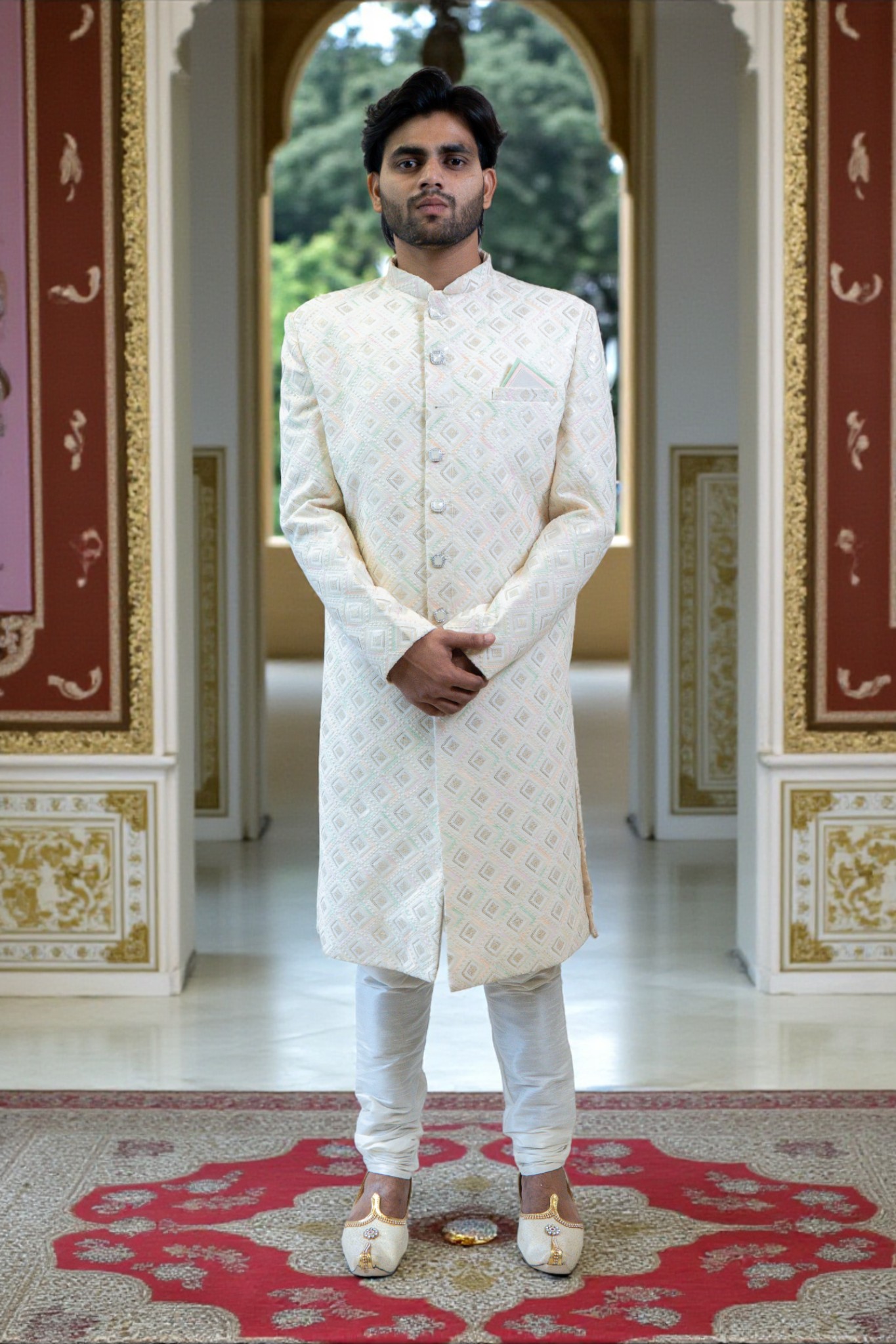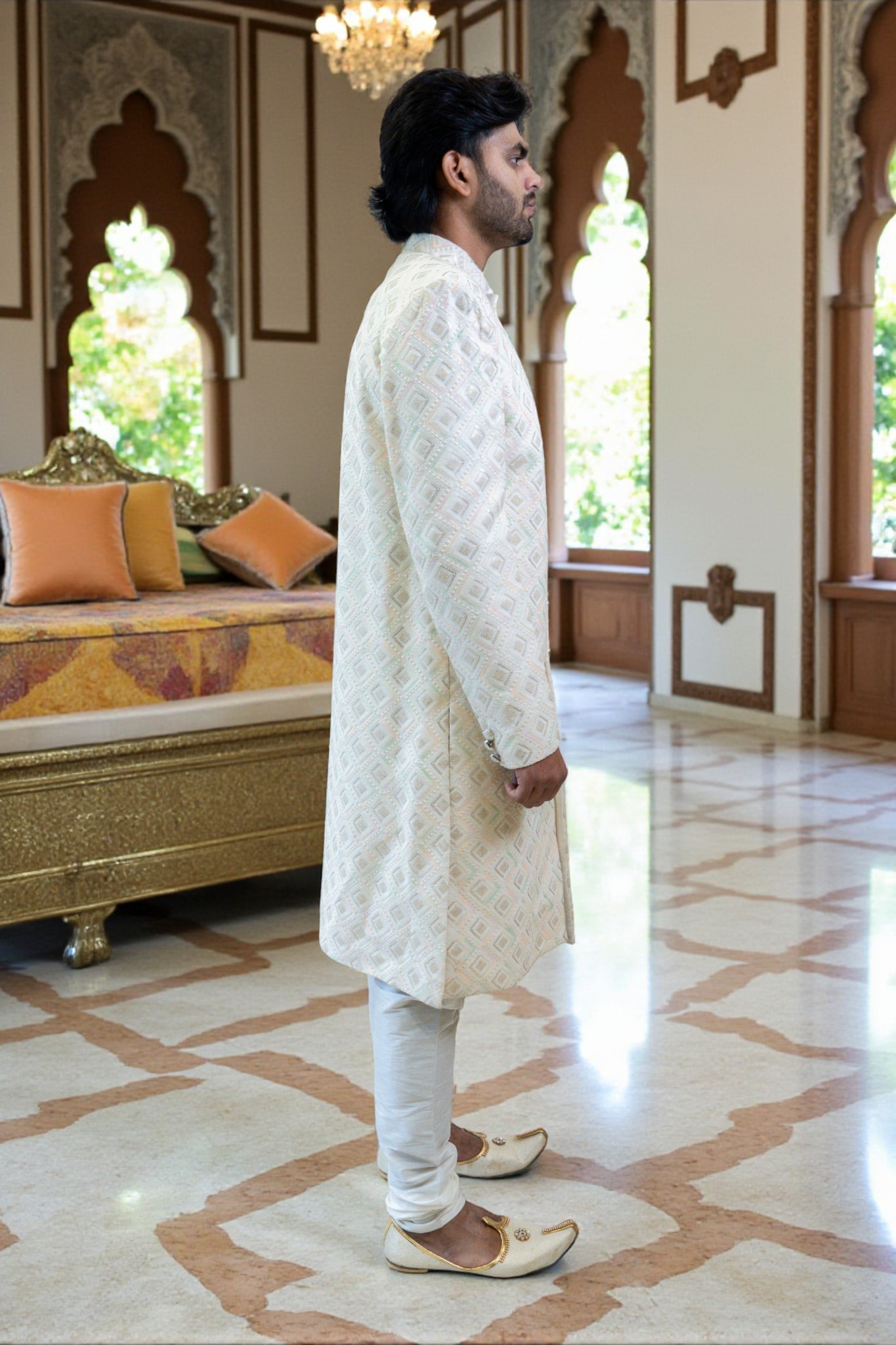 Ivory Dreams: Majestic Jaal Sherwani Set (Off White)