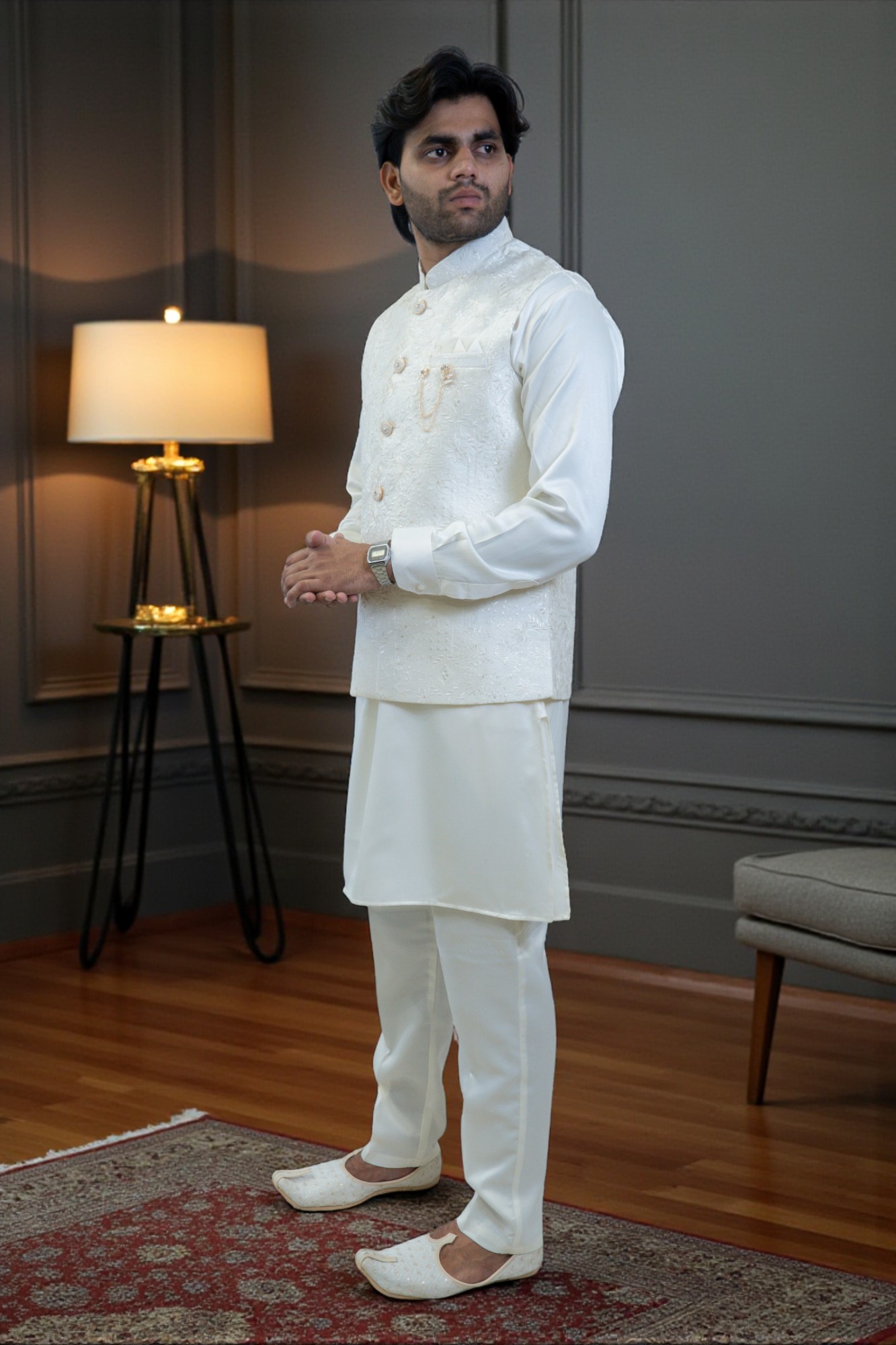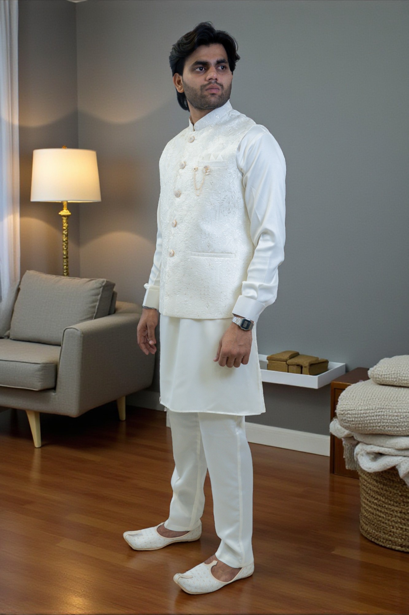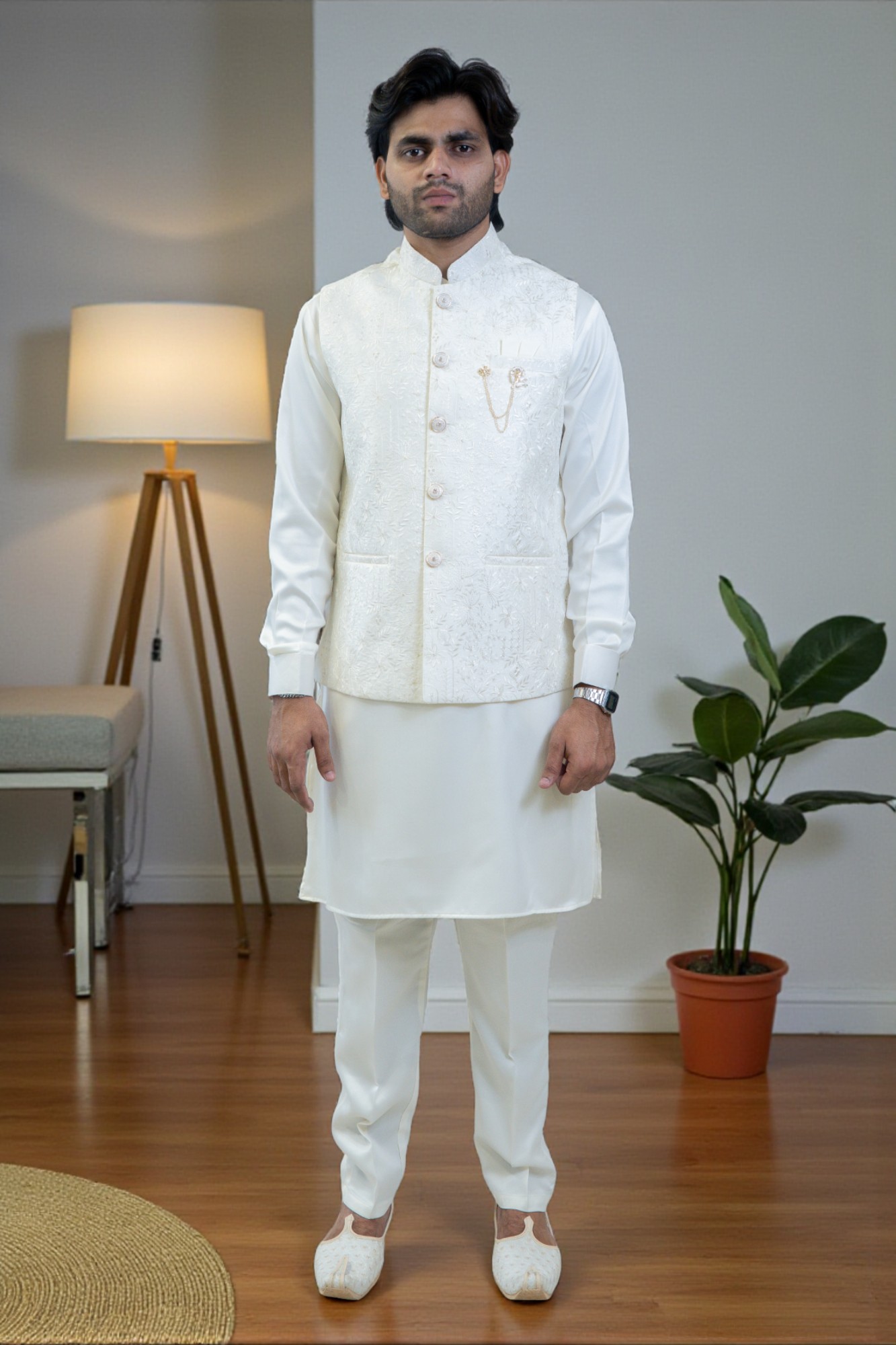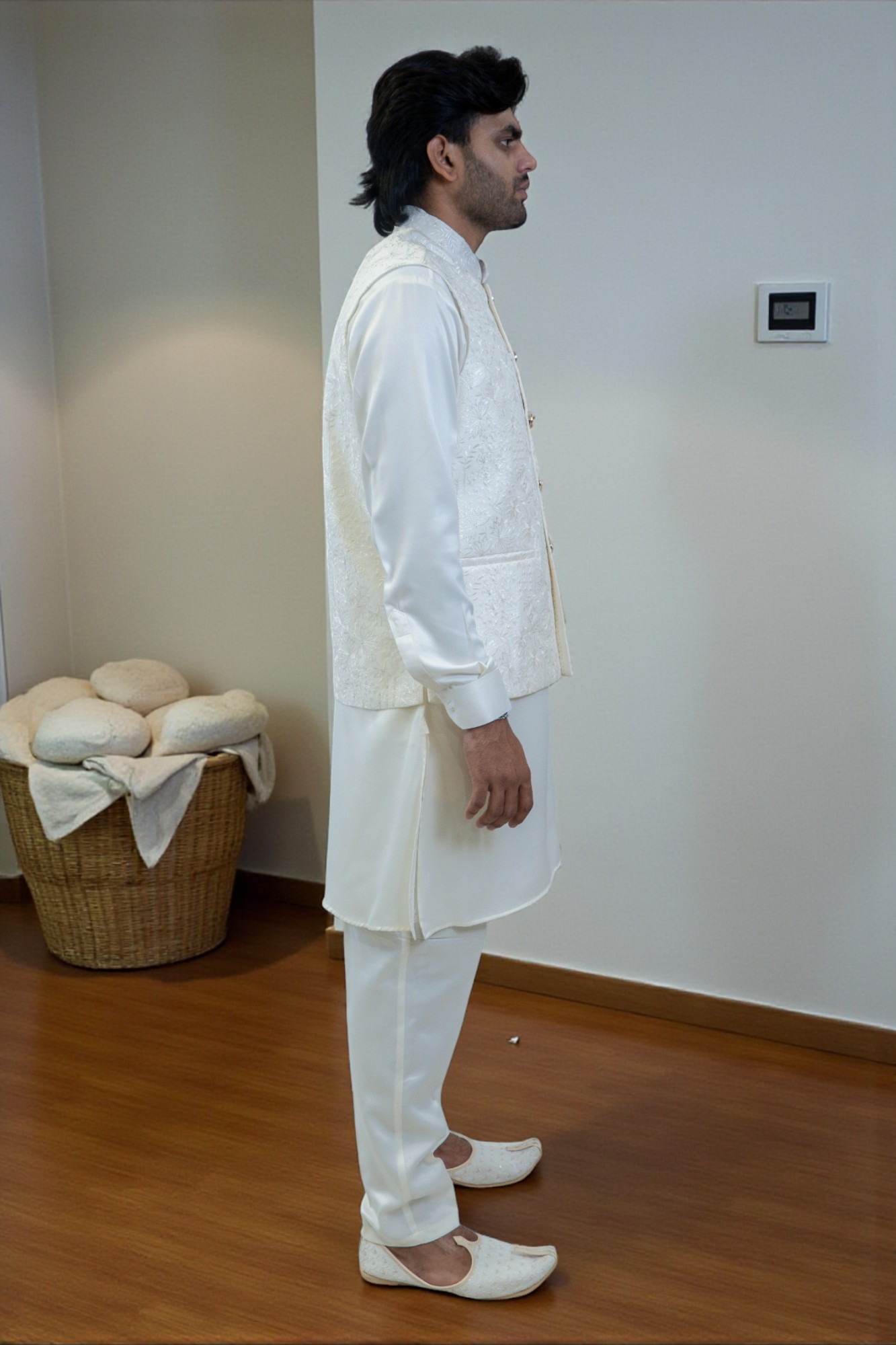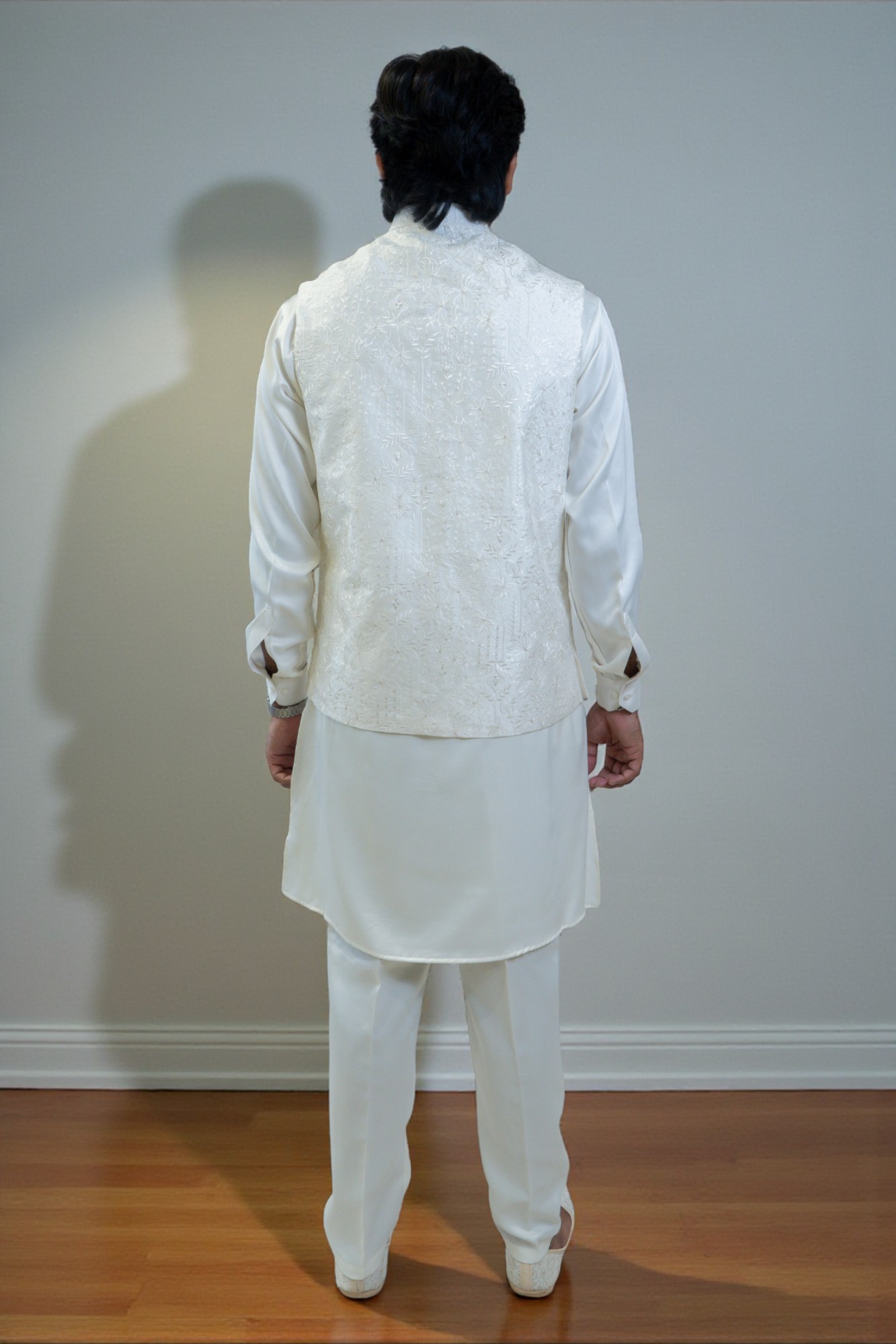 Off-White Kurta Jacket Set for Men – Embroidered Flower Design Jacket