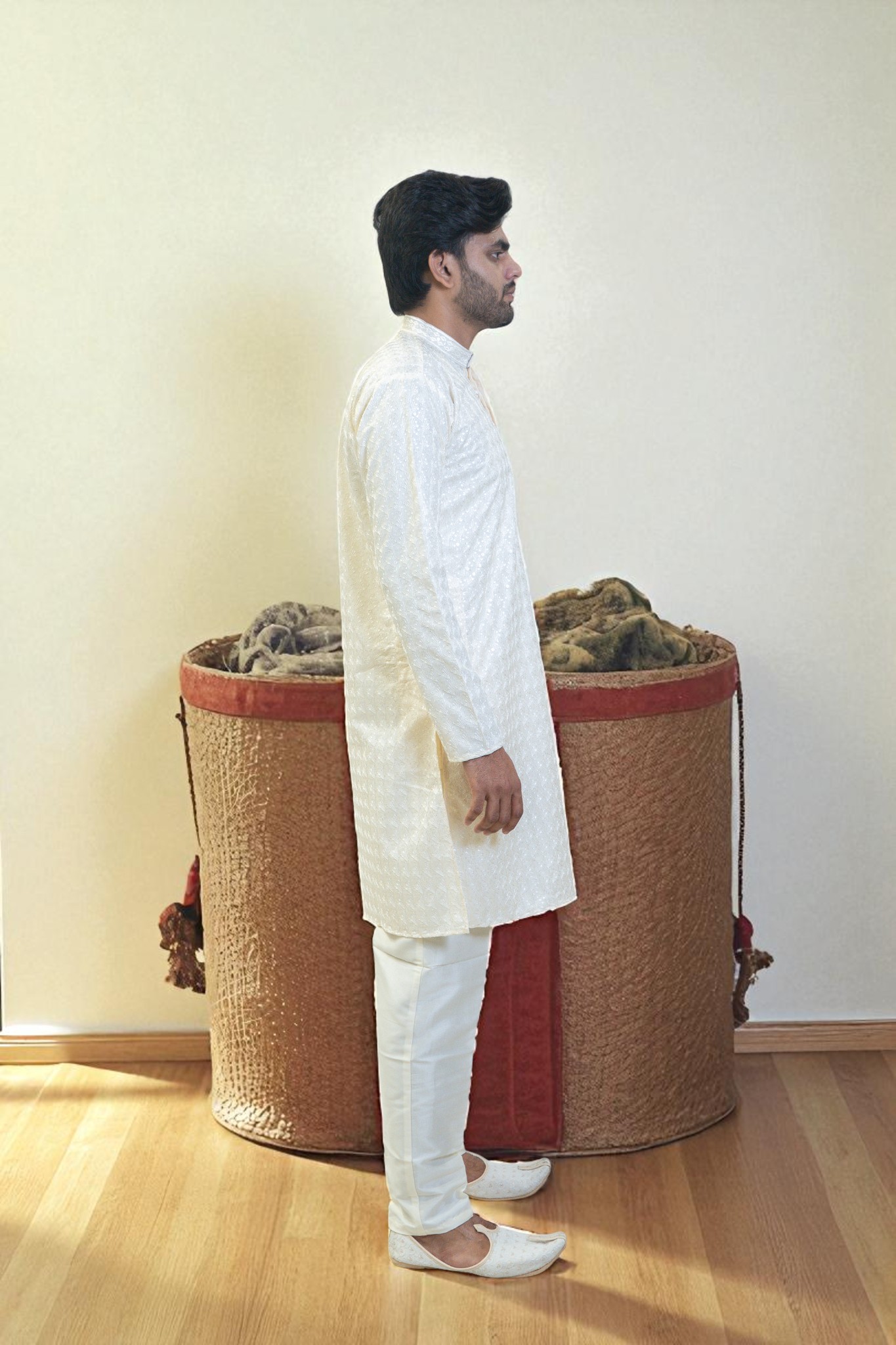 Whether you’re dressing for a wedding, festival, or party, this off white kurta pajama will make you stand out with its timeless appeal and elegant craftsmanship.