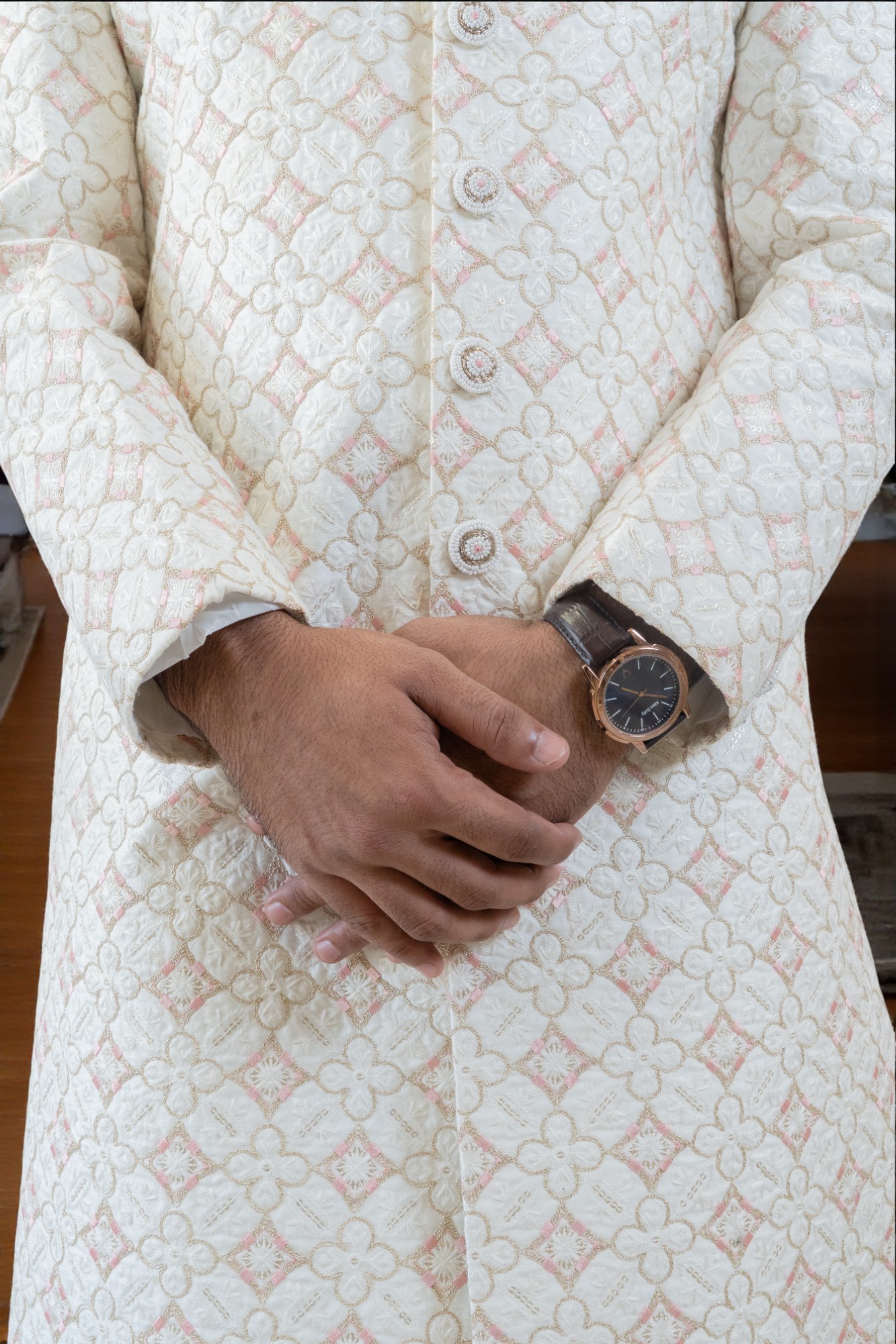 Off-White Sherwani Set for Men with Floral Embroidery – Elegant & Modern