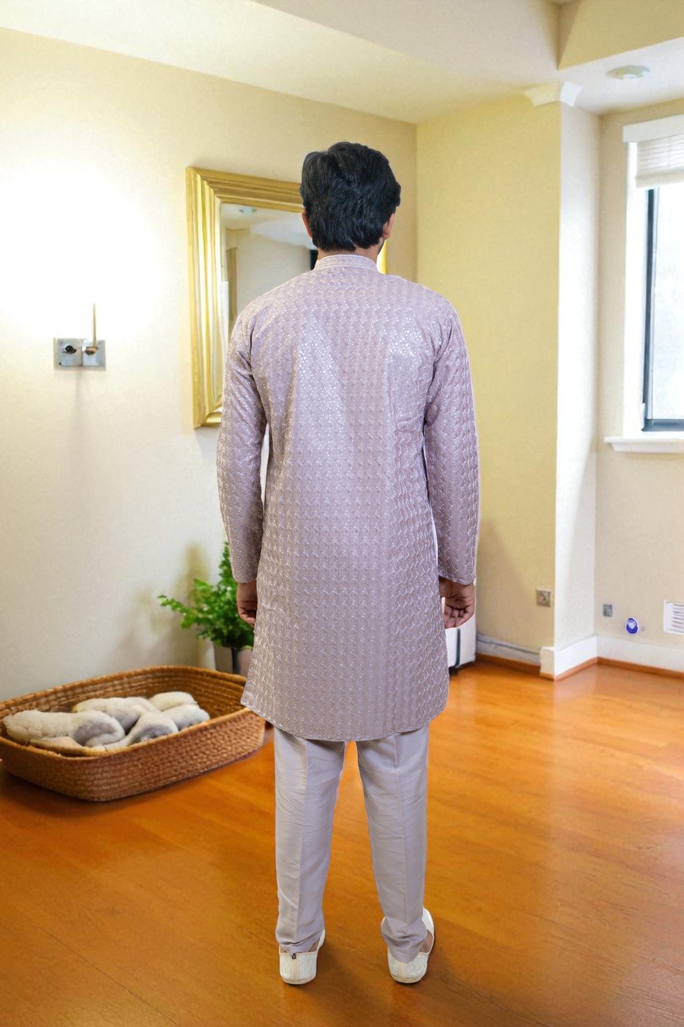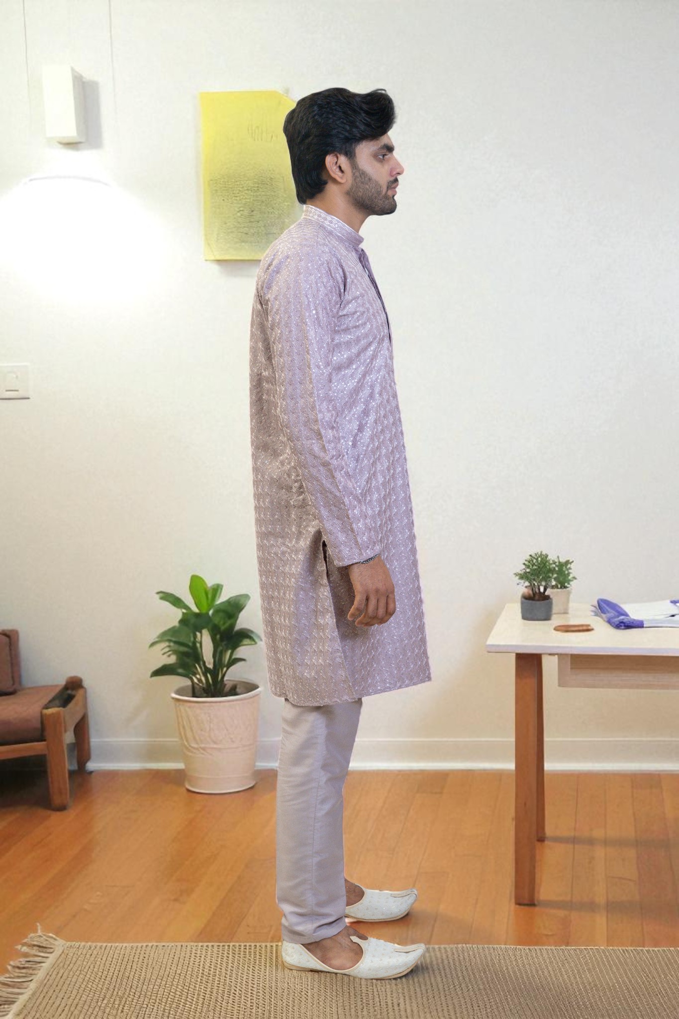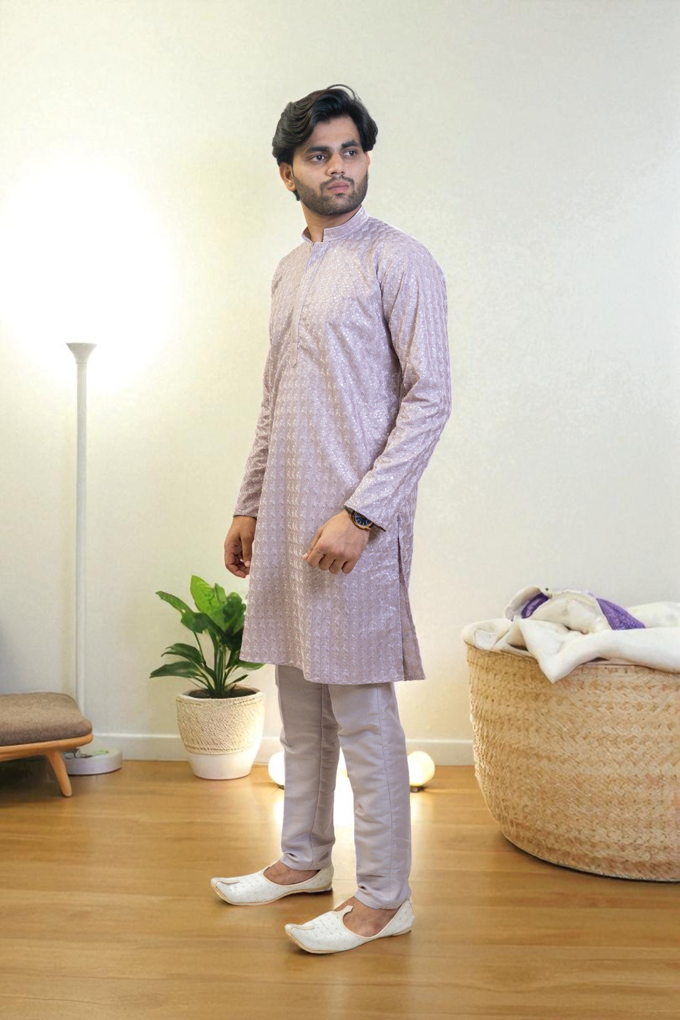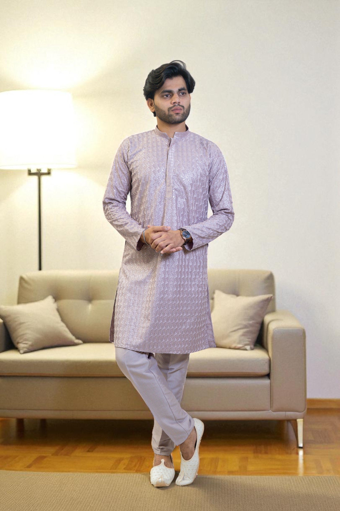 Onion Color Thread Work Kurta Pajama for Men – Stylish & Comfortable
