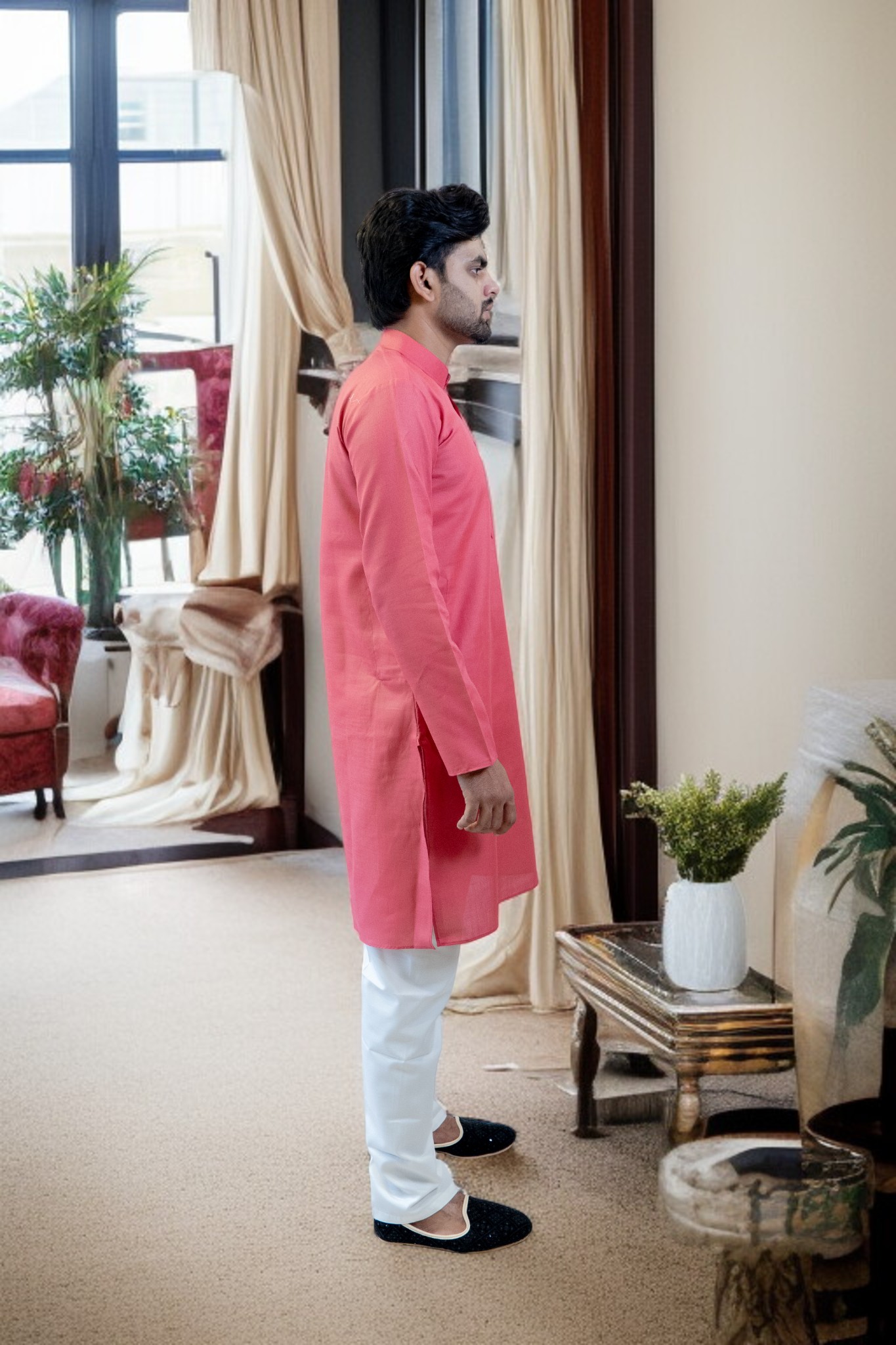 pink cotton kurta pajama, designed for comfort and style. Crafted from 100% soft, breathable cotton, it ensures a comfortable fit all day, keeping you cool and relaxed on any occasion.