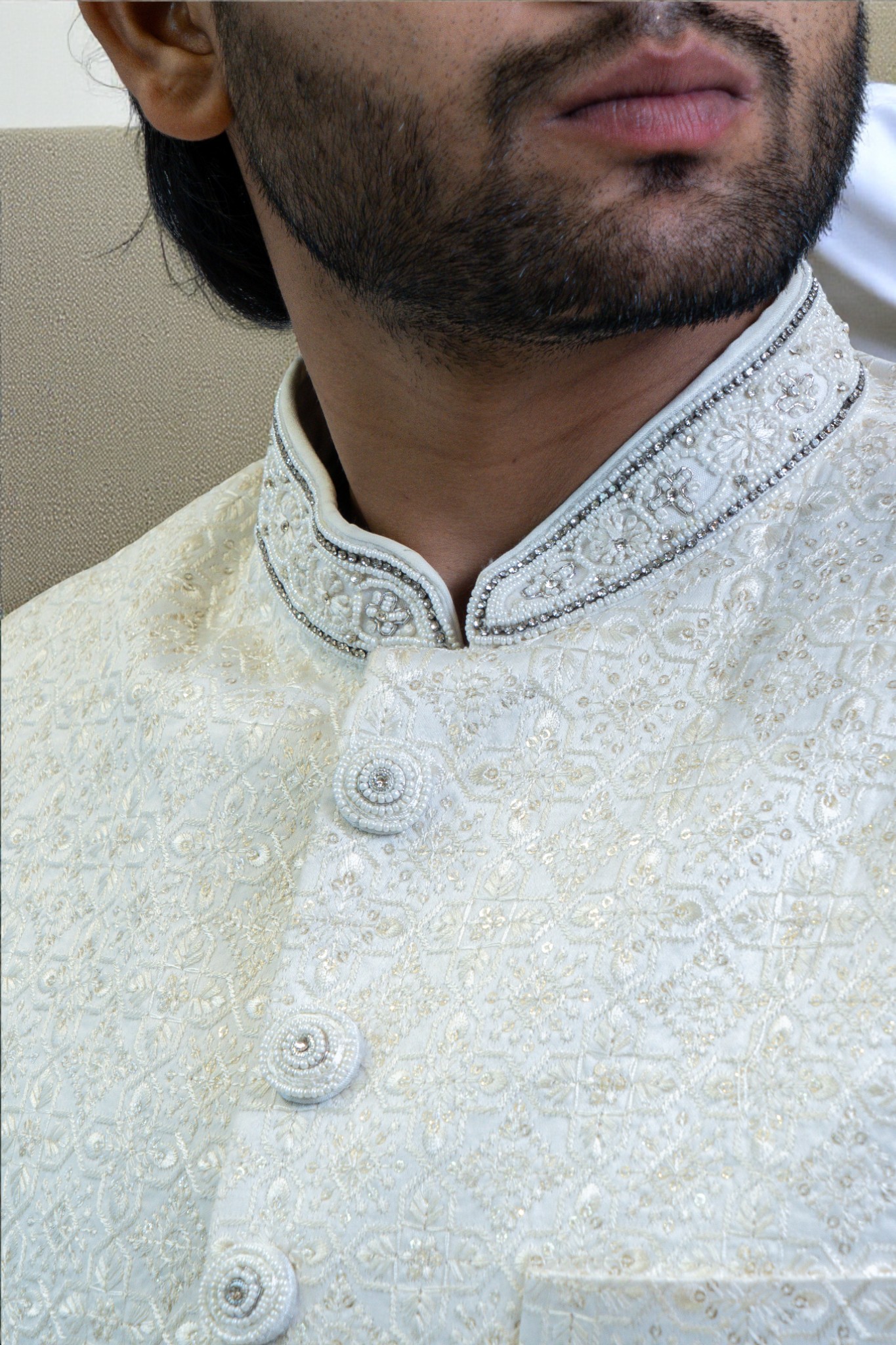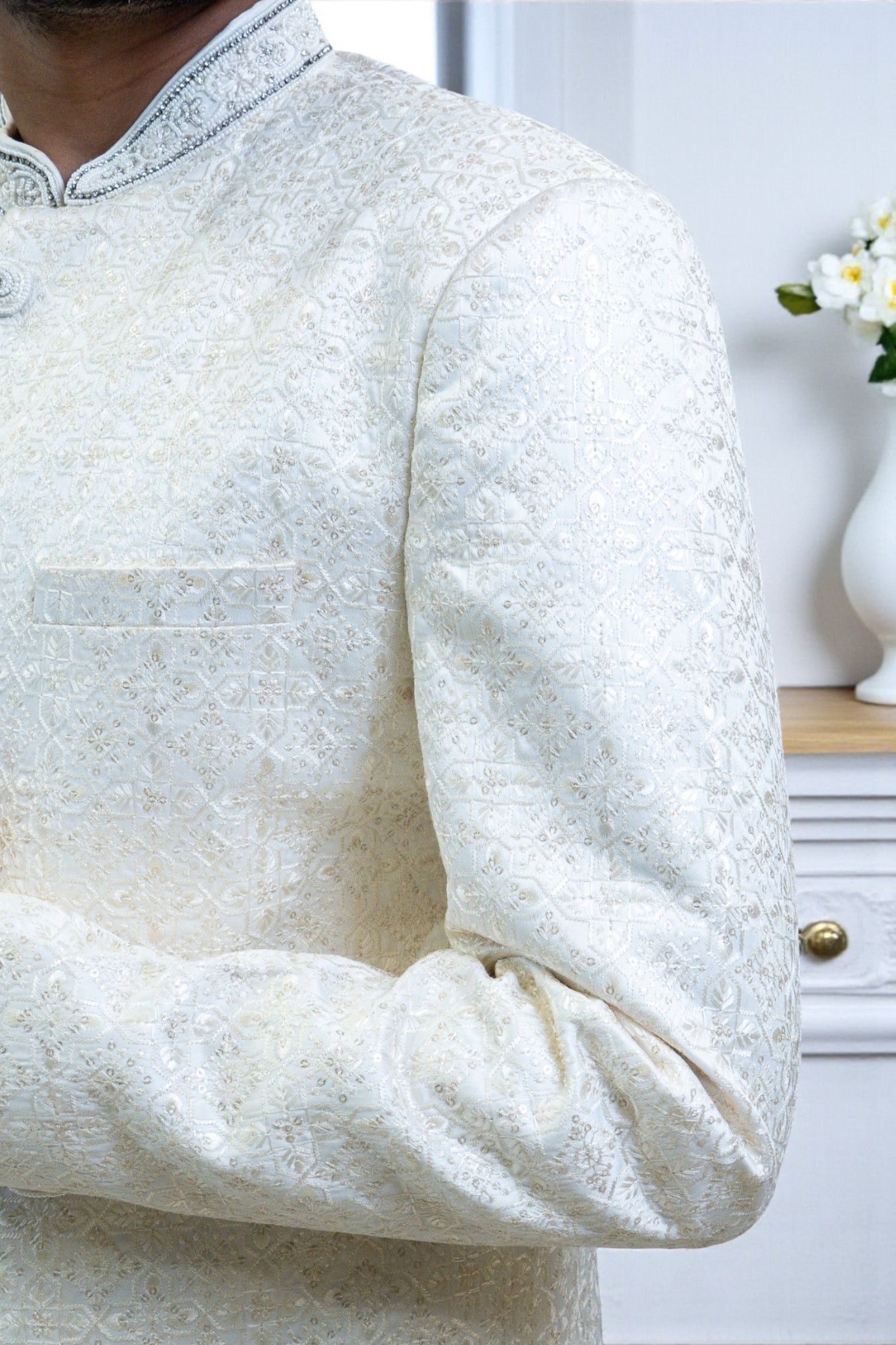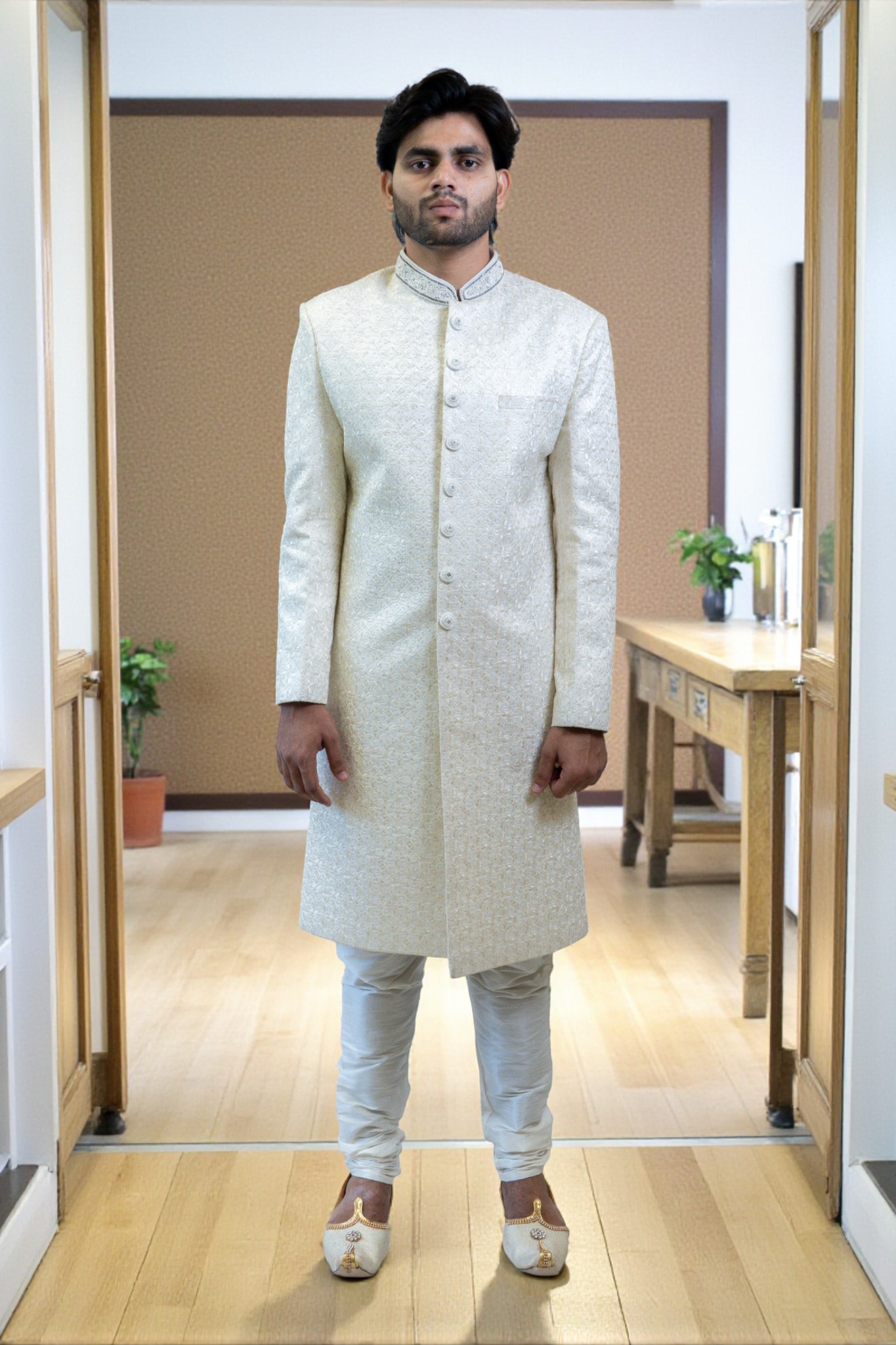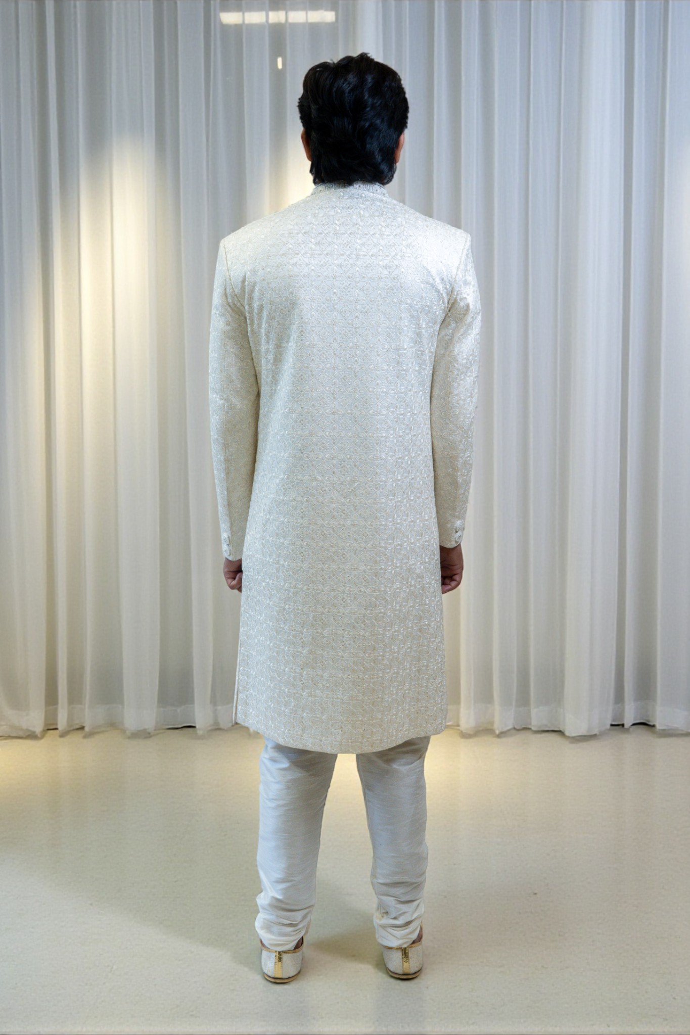 Off-White Floral Sherwani Set for Men – Stylish Sequins Design & Comfortable Fit
