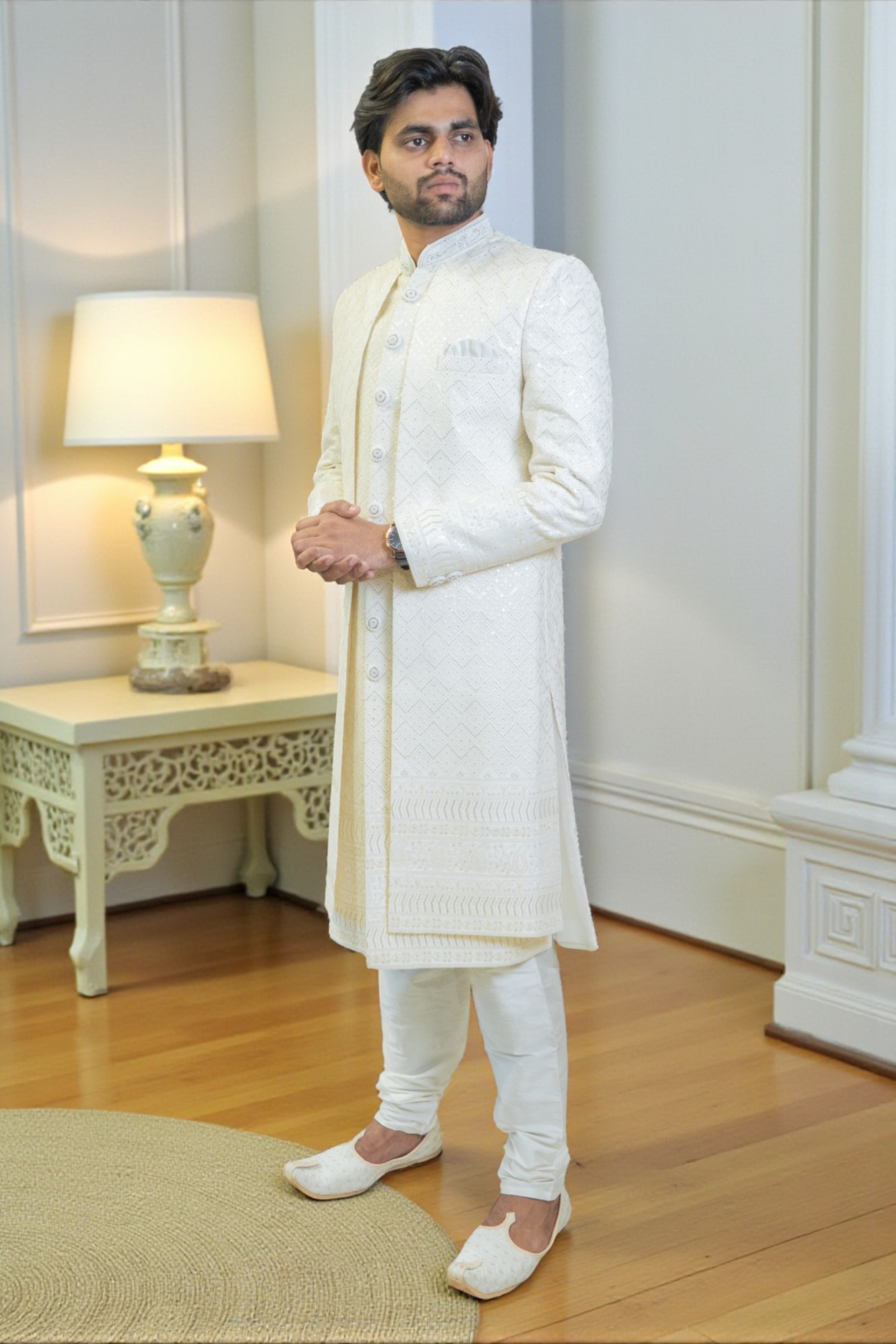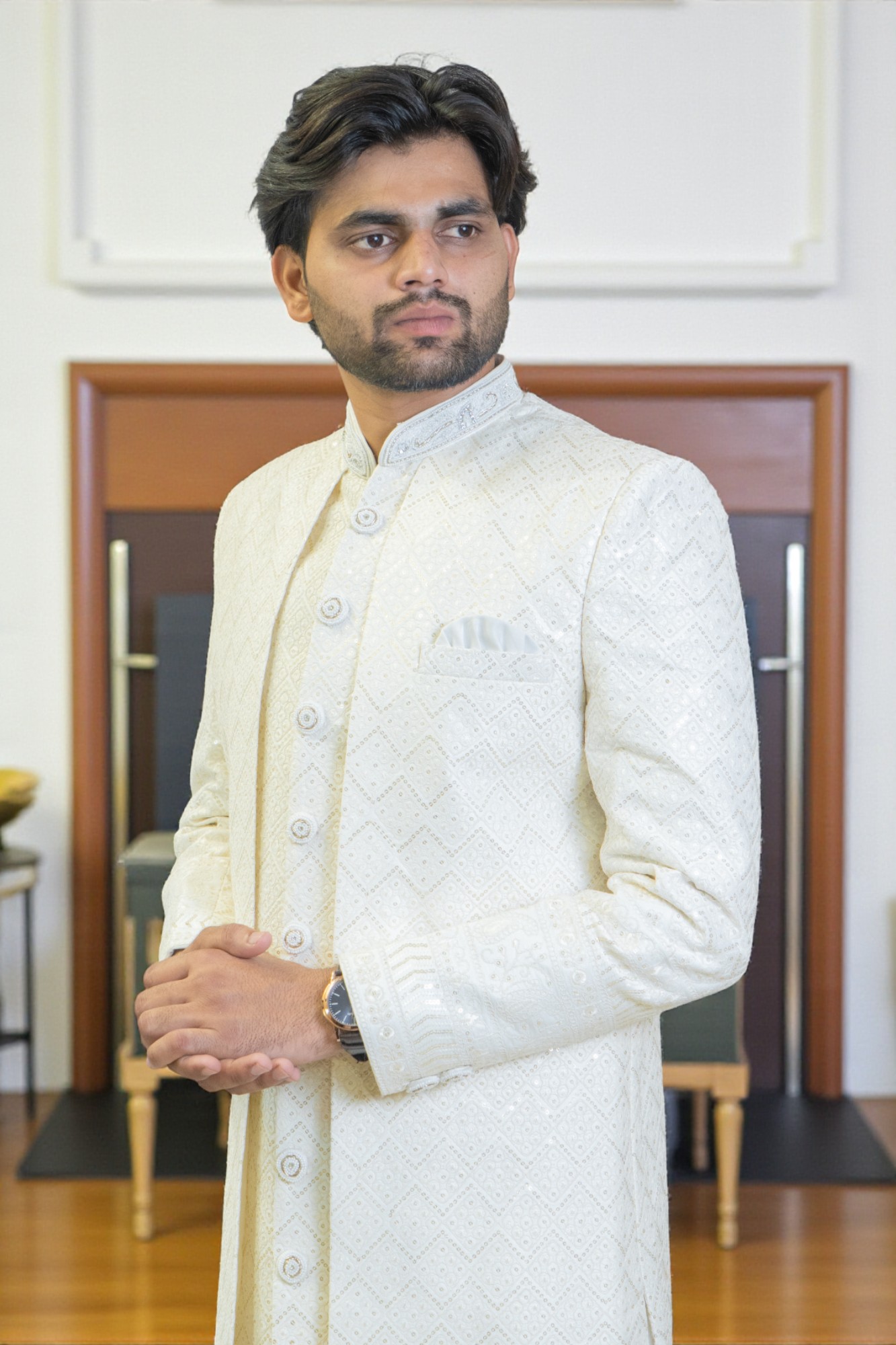 This Sherwani combines style, tradition, and comfort in one outfit. Its elegant embroidery and premium fabric make it a timeless choice for men who want to look graceful, confident, and stylish at every celebration.