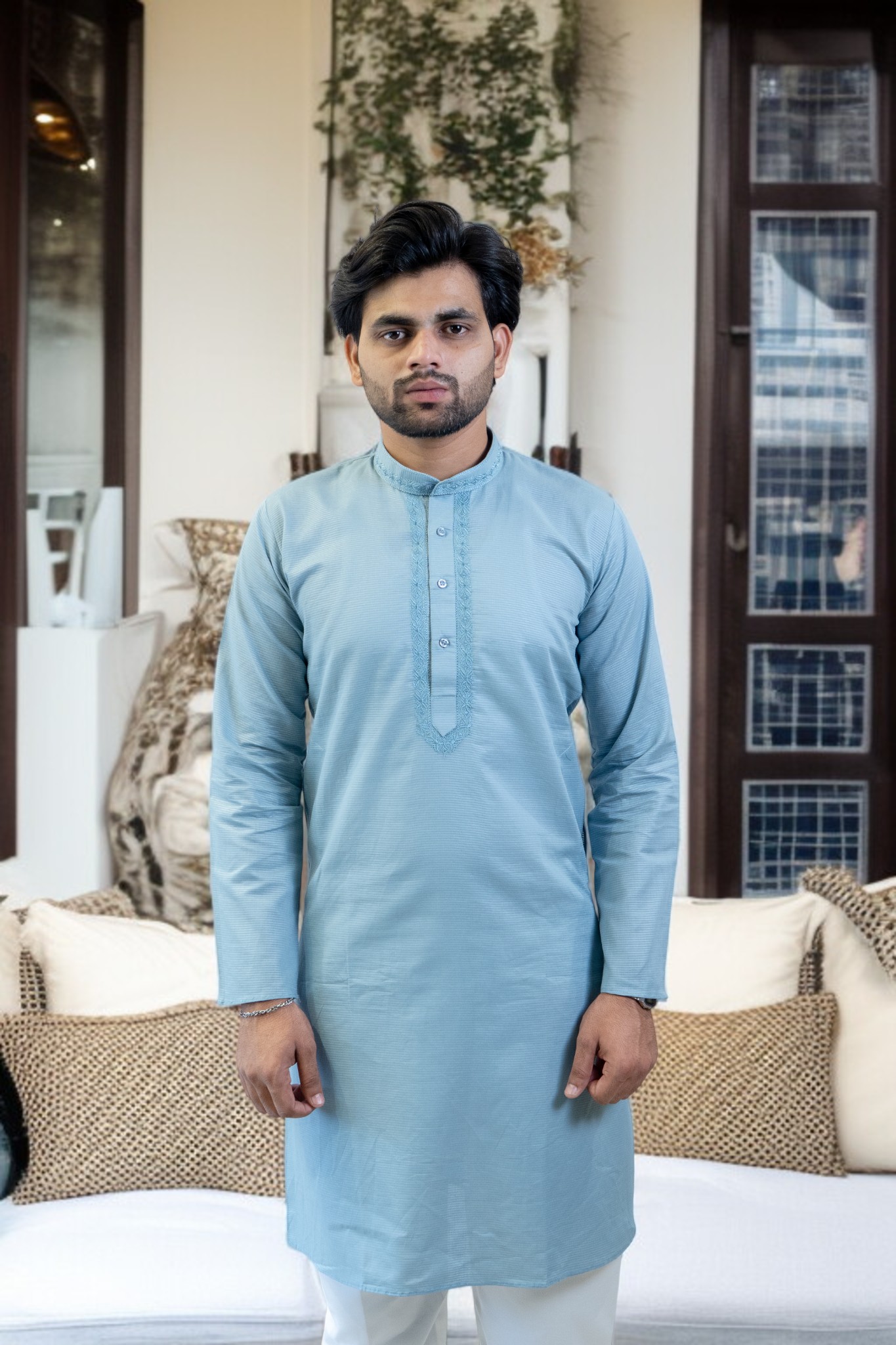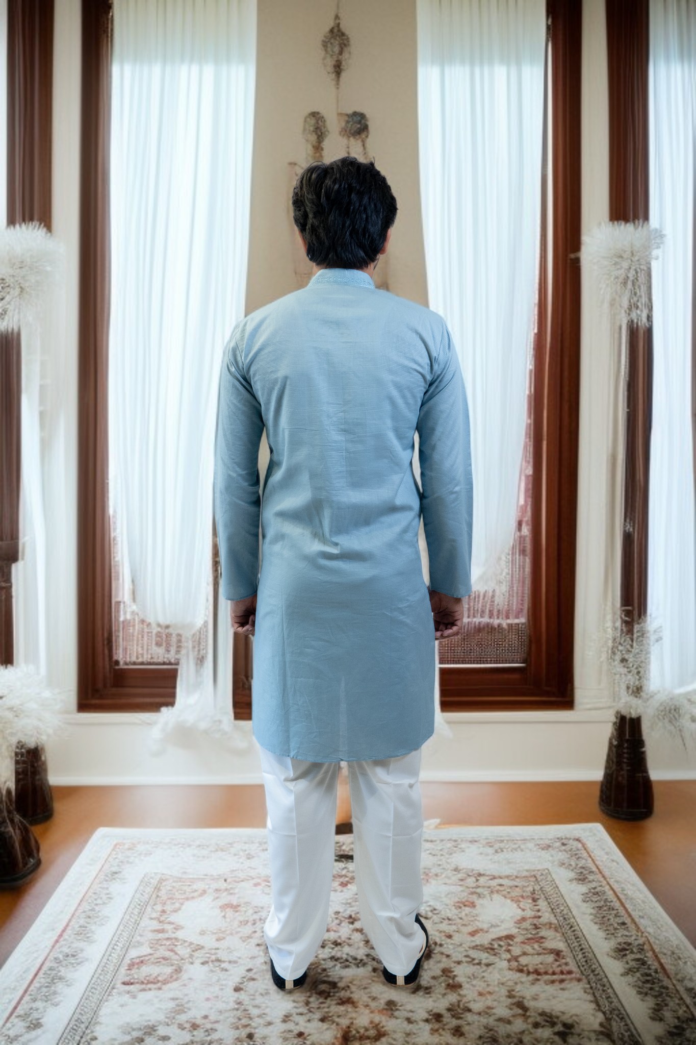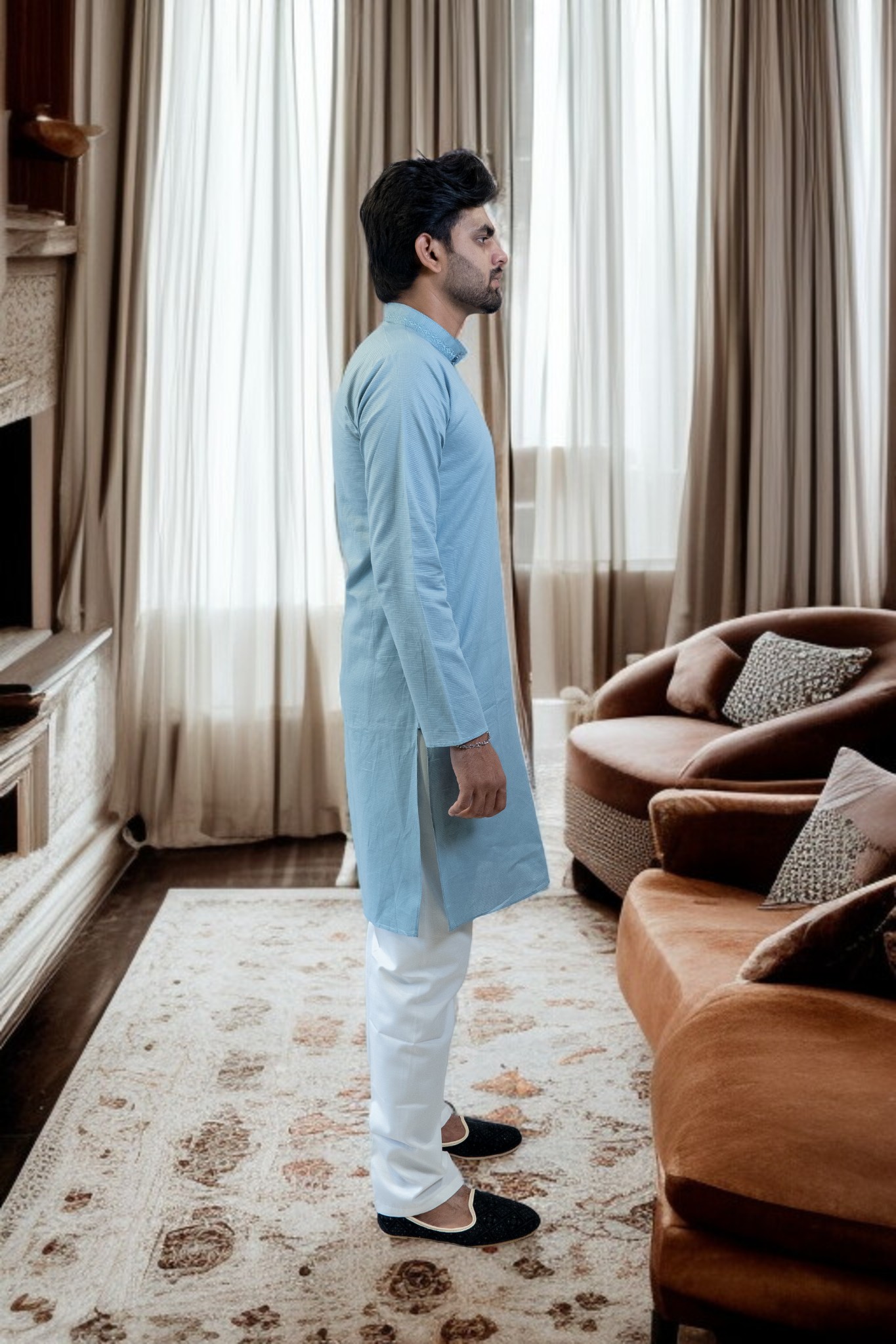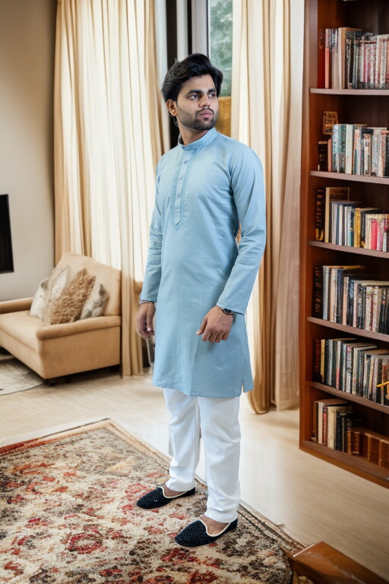 Sky Blue Cotton Kurta with White Pajama – Trendy & Comfortable